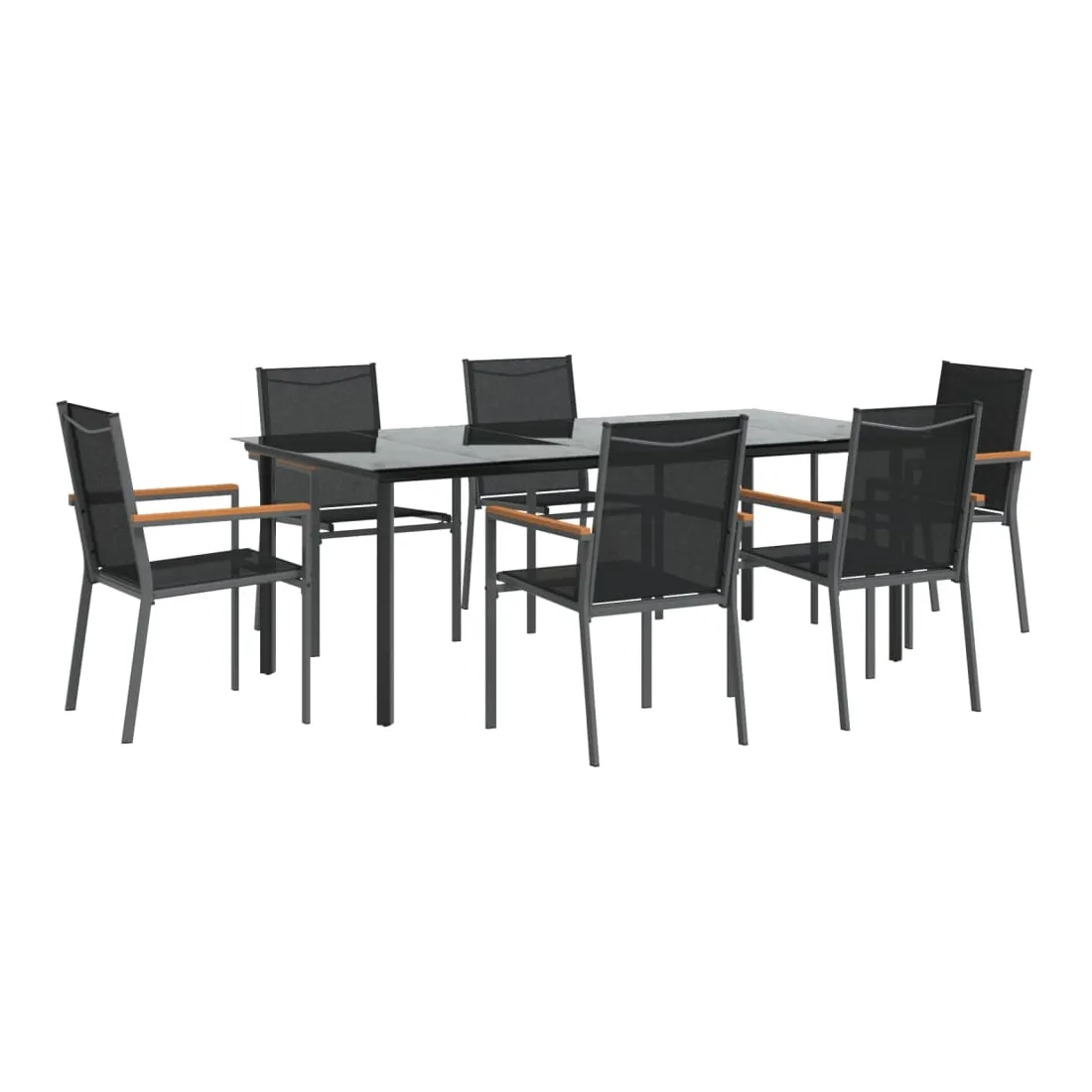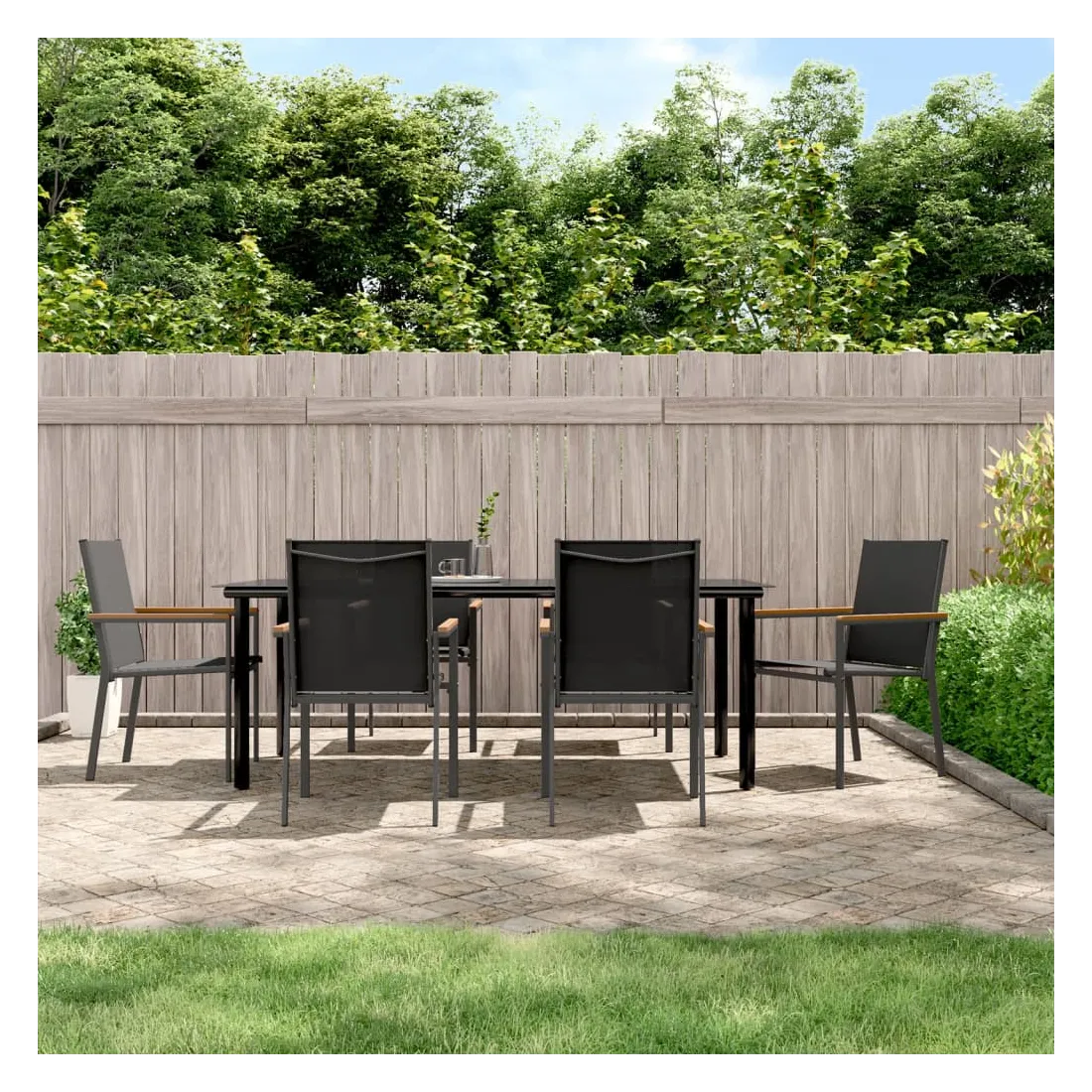 Détendez-vous et profitez d'un bon thé de l'après-midi ou de n'importe quel repas avec votre famille et vos amis autour de cet ensemble de salle à manger de jardin ! Matériau durable : le tissu en textilène permet à l'air de circuler librement à travers lui tout en étant résistant aux rayons UV. Le textilène est donc idéal pour les temps chauds. En tant que matériau durable et solide, il est très résistant aux déchirures, aux perforations et aux moisissures.Cadre robuste et stable : les cadres en acier rendent l'ensemble à manger robuste et stable pour une utilisation quotidienne à l'extérieur.Dessus de table pratique : le plateau lisse de la table à manger est en verre trempé facile à nettoyer avec un chiffon humide. De plus, il offre un excellent support pour contenir vos repas, boissons et autres objets décoratifs.Assise confortable : la chaise à manger est conçue avec un dossier et des accoudoirs pour vous offrir une expérience d'assise confortable. Remarque :Pour que vos meubles d'extérieur restent beaux, nous vous recommandons de les protéger avec une housse imperméable.