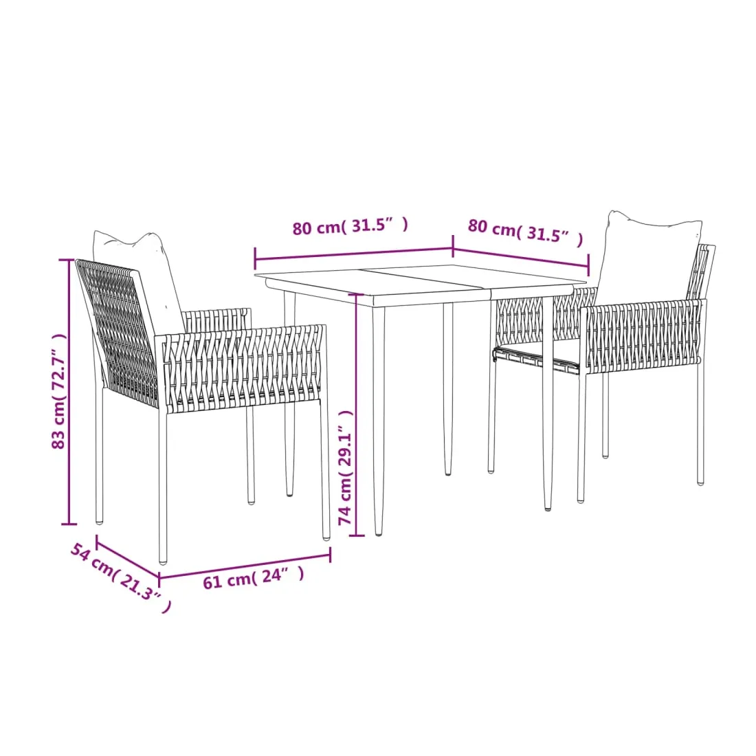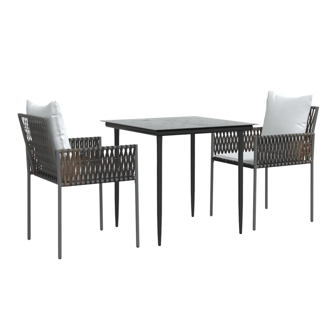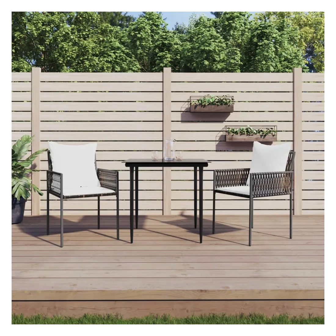 Détendez-vous et profitez d'un bon thé de l'après-midi ou de n'importe quel repas avec votre famille et vos amis autour de cet ensemble de salle à manger de jardin ! Matériau durable : la résine tressée, également connue sous le nom de rotin poly, résiste aux intempéries et est facile à nettoyer. Elle reste belle à l'extérieur pendant une longue période. Elle offre une excellente qualité, commodité et un aspect esthétique.Cadre robuste et stable : les cadres en acier rendent l'ensemble à manger robuste et stable pour une utilisation quotidienne à l'extérieur.Dessus de table pratique : le plateau lisse de la table à manger est en verre trempé facile à nettoyer avec un chiffon humide. De plus, il offre un excellent support pour contenir vos repas, boissons et autres objets décoratifs.Assise confortable : la chaise à manger est conçue avec un dossier et des accoudoirs pour vous offrir une expérience d'assise confortable. De plus, les coussins épais rembourrés offrent un confort ultime pour votre temps d'assise. Remarque :Pour que vos meubles d'extérieur restent beaux, nous vous recommandons de les protéger avec une housse imperméable.