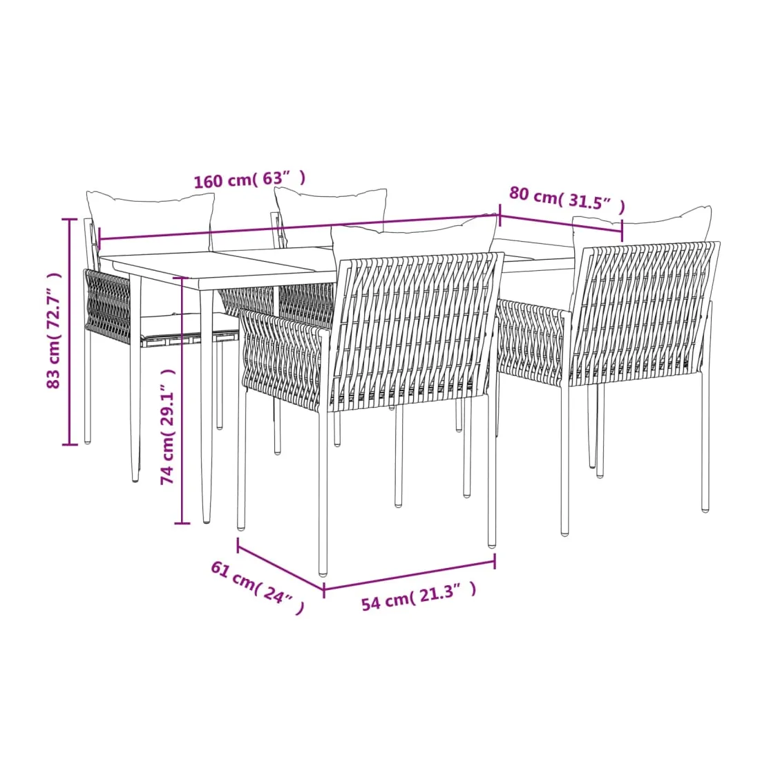 - Dimensions : 160 x 80 x 74 cm (L x l x H)