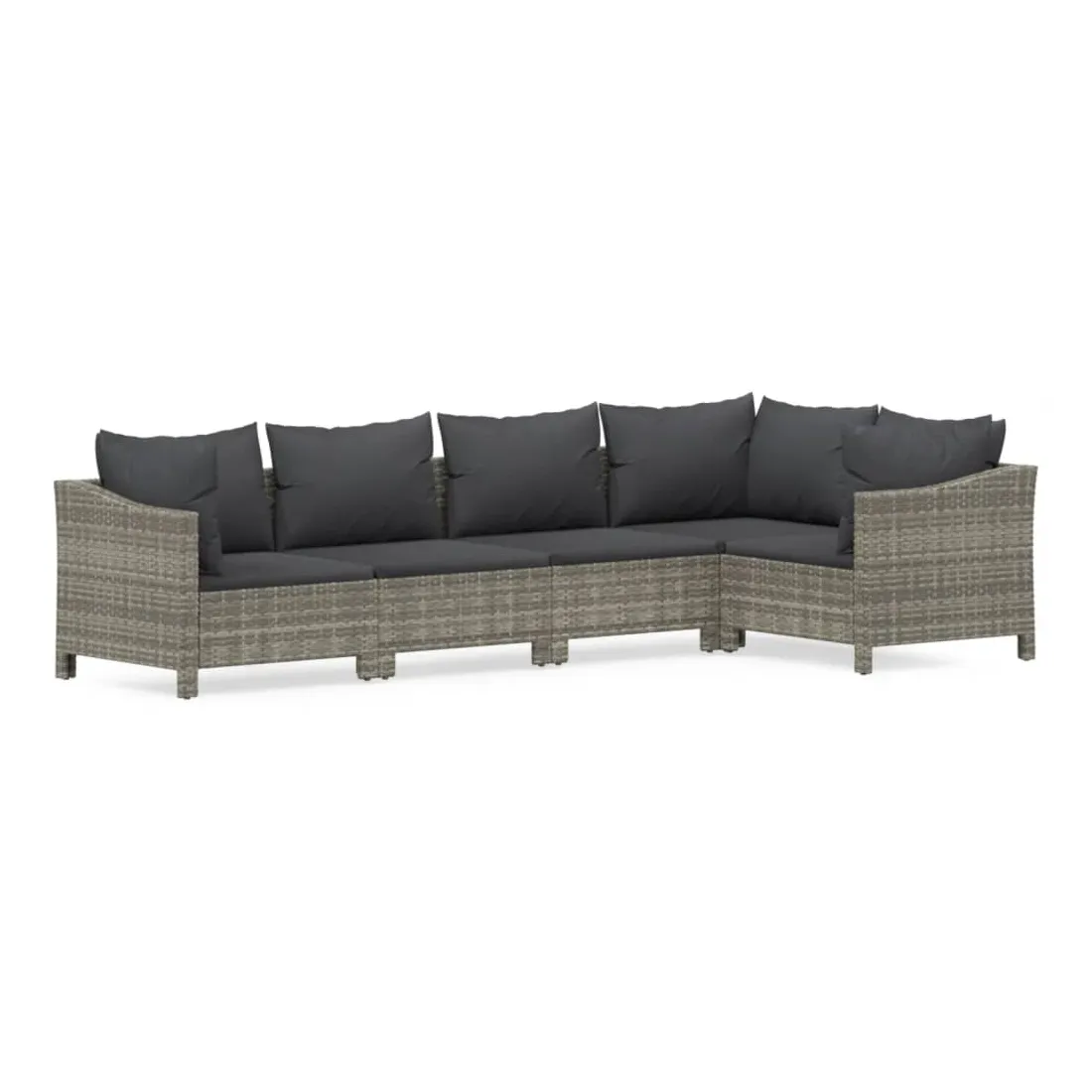 Salon de jardin 5 pcs avec coussins Gris Résine tressée