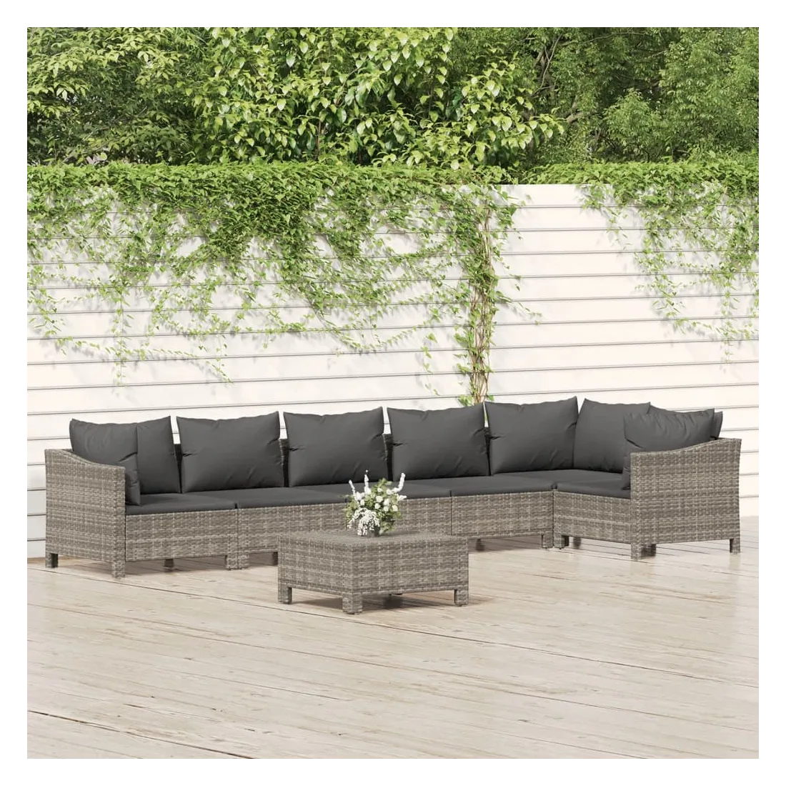 Cet ensemble de salon de jardin tendance, au design élégant et contemporain, est un excellent choix pour vous détendre dans votre jardin. Matériau durable : la résine tressée, également connue sous le nom de rotin poly, résiste aux intempéries et est facile à nettoyer. Elle reste belle à l'extérieur pendant une longue période. Elle est plus économique que d'autres matériaux, tout en offrant une excellente qualité, une commodité et un aspect esthétique.Cadre stable : l'acier est un matériau exceptionnellement dur et résistant. Il offre robustesse et stabilité. Le revêtement en poudre sur l'acier crée une couche protectrice contre l'usure.Conception modulaire : chaque pièce est facile à déplacer, ce qui vous permet de créer facilement différents agencements adaptés à vos besoins. Vous pouvez également trouver les pièces individuelles dans notre boutique en ligne pour arranger vos propres modèles de meubles.Expérience de siège confortable : avec les coussins de siège et de dossier bien rembourrés, l'ensemble de salon d'extérieur est très confortable. Bon à savoir :Pour faciliter au maximum le montage, chaque produit est livré avec des instructions. Remarque :Pour que vos meubles d'extérieur restent beaux, nous vous recommandons de les protéger avec une housse imperméable.