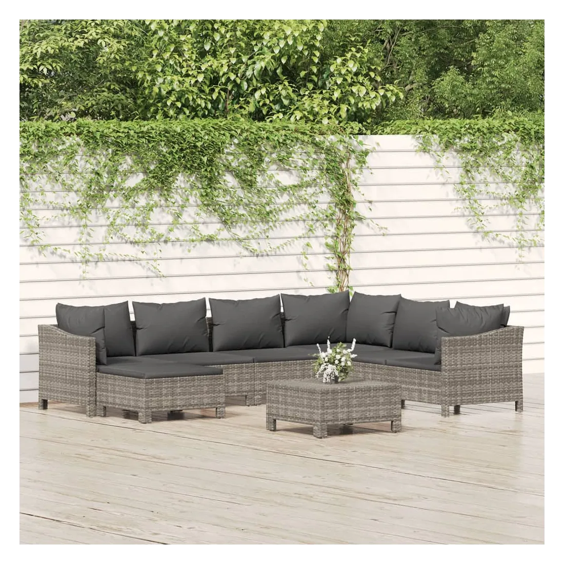 Cet ensemble de salon de jardin tendance, au design élégant et contemporain, est un excellent choix pour vous détendre dans votre jardin. Matériau durable : la résine tressée, également connue sous le nom de rotin poly, résiste aux intempéries et est facile à nettoyer. Elle reste belle à l'extérieur pendant une longue période. Elle est plus économique que d'autres matériaux, tout en offrant une excellente qualité, une commodité et un aspect esthétique.Cadre stable : l'acier est un matériau exceptionnellement dur et résistant. Il offre robustesse et stabilité. Le revêtement en poudre sur l'acier crée une couche protectrice contre l'usure.Conception modulaire : chaque pièce est facile à déplacer, ce qui vous permet de créer facilement différents agencements adaptés à vos besoins. Vous pouvez également trouver les pièces individuelles dans notre boutique en ligne pour arranger vos propres modèles de meubles.Expérience de siège confortable : avec les coussins de siège et de dossier bien rembourrés, l'ensemble de salon d'extérieur est très confortable. Bon à savoir :Pour faciliter au maximum le montage, chaque produit est livré avec des instructions. Remarque :Pour que vos meubles d'extérieur restent beaux, nous vous recommandons de les protéger avec une housse imperméable.