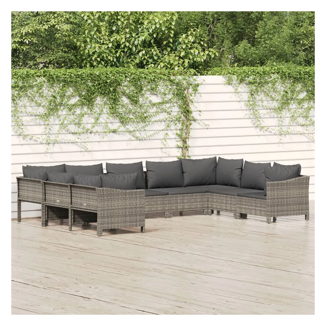 Cet ensemble de salon de jardin tendance, au design élégant et contemporain, est un excellent choix pour vous détendre dans votre jardin. Matériau durable : la résine tressée, également connue sous le nom de rotin poly, résiste aux intempéries et est facile à nettoyer. Elle reste belle à l'extérieur pendant une longue période. Elle est plus économique que d'autres matériaux, tout en offrant une excellente qualité, une commodité et un aspect esthétique.Cadre stable : l'acier est un matériau exceptionnellement dur et résistant. Il offre robustesse et stabilité. Le revêtement en poudre sur l'acier crée une couche protectrice contre l'usure.Conception modulaire : chaque pièce est facile à déplacer, ce qui vous permet de créer facilement différents agencements adaptés à vos besoins. Vous pouvez également trouver les pièces individuelles dans notre boutique en ligne pour arranger vos propres modèles de meubles.Expérience de siège confortable : avec les coussins de siège et de dossier bien rembourrés, l'ensemble de salon d'extérieur est très confortable. Bon à savoir :Pour faciliter au maximum le montage, chaque produit est livré avec des instructions. Remarque :Pour que vos meubles d'extérieur restent beaux, nous vous recommandons de les protéger avec une housse imperméable.