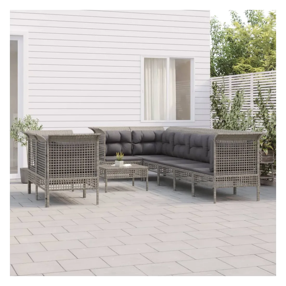 Salon de jardin 9 pcs avec coussins Gris Résine tressée