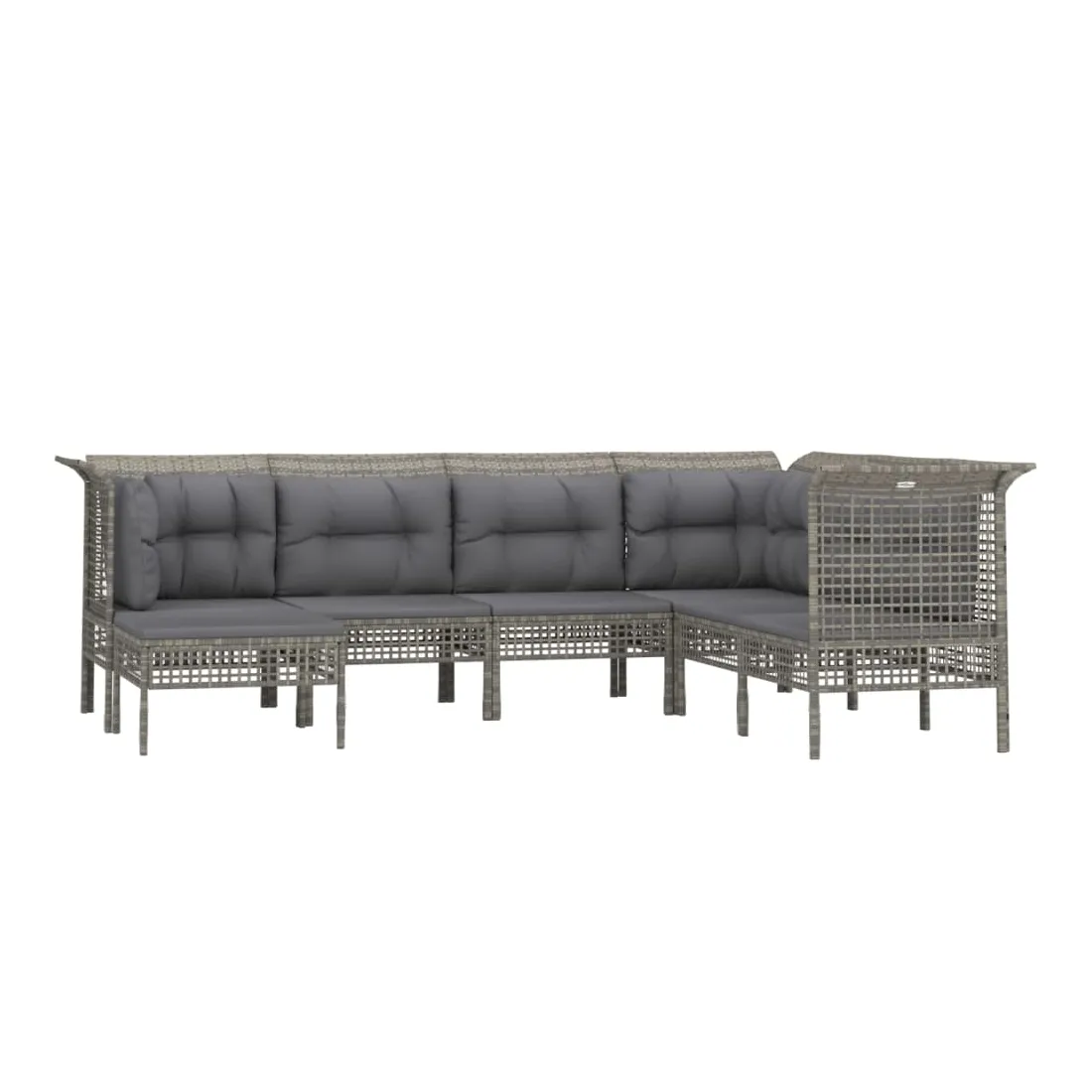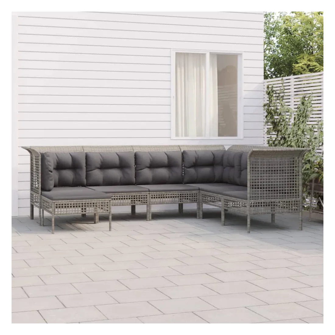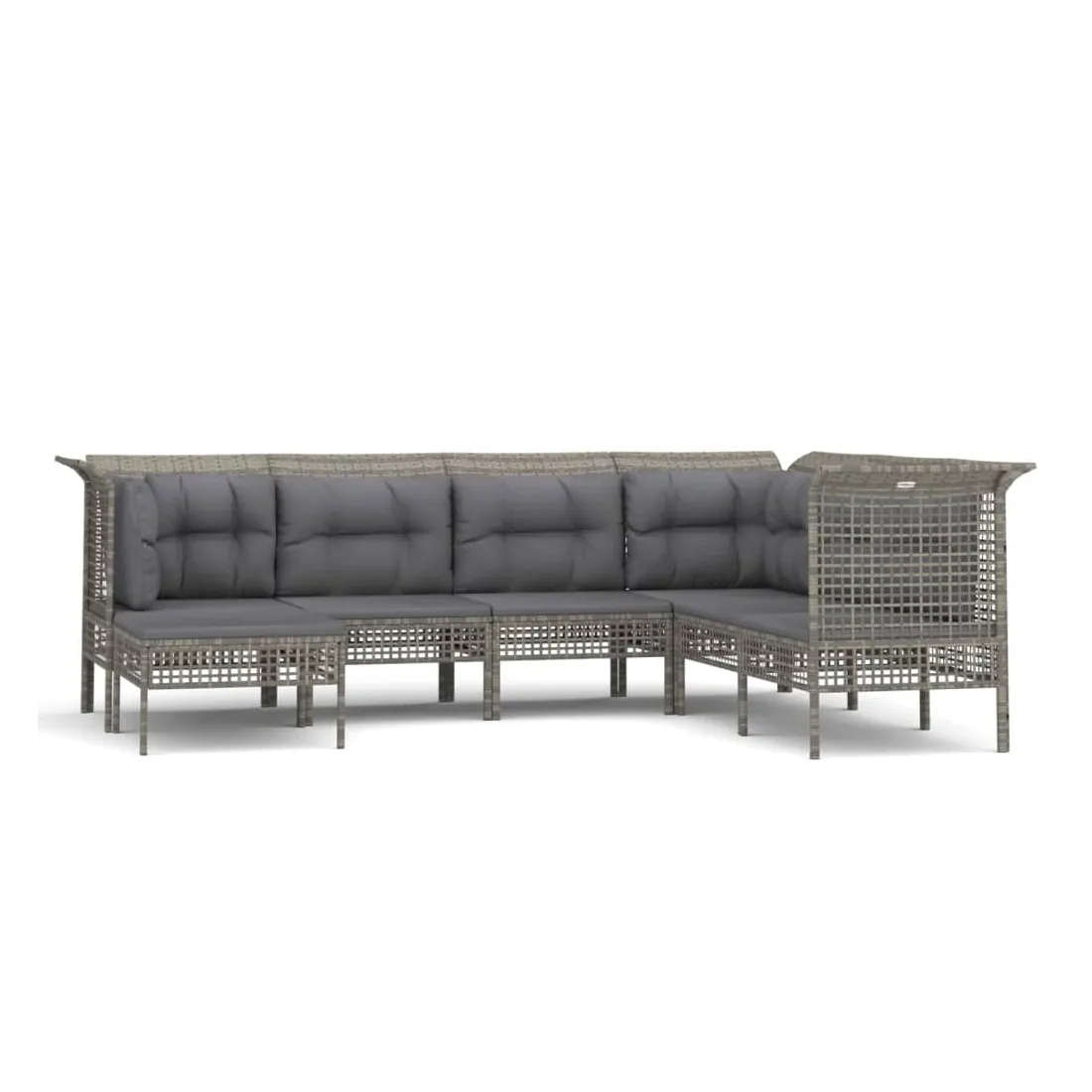 Salon de jardin 7 pcs avec coussins Gris Résine tressée