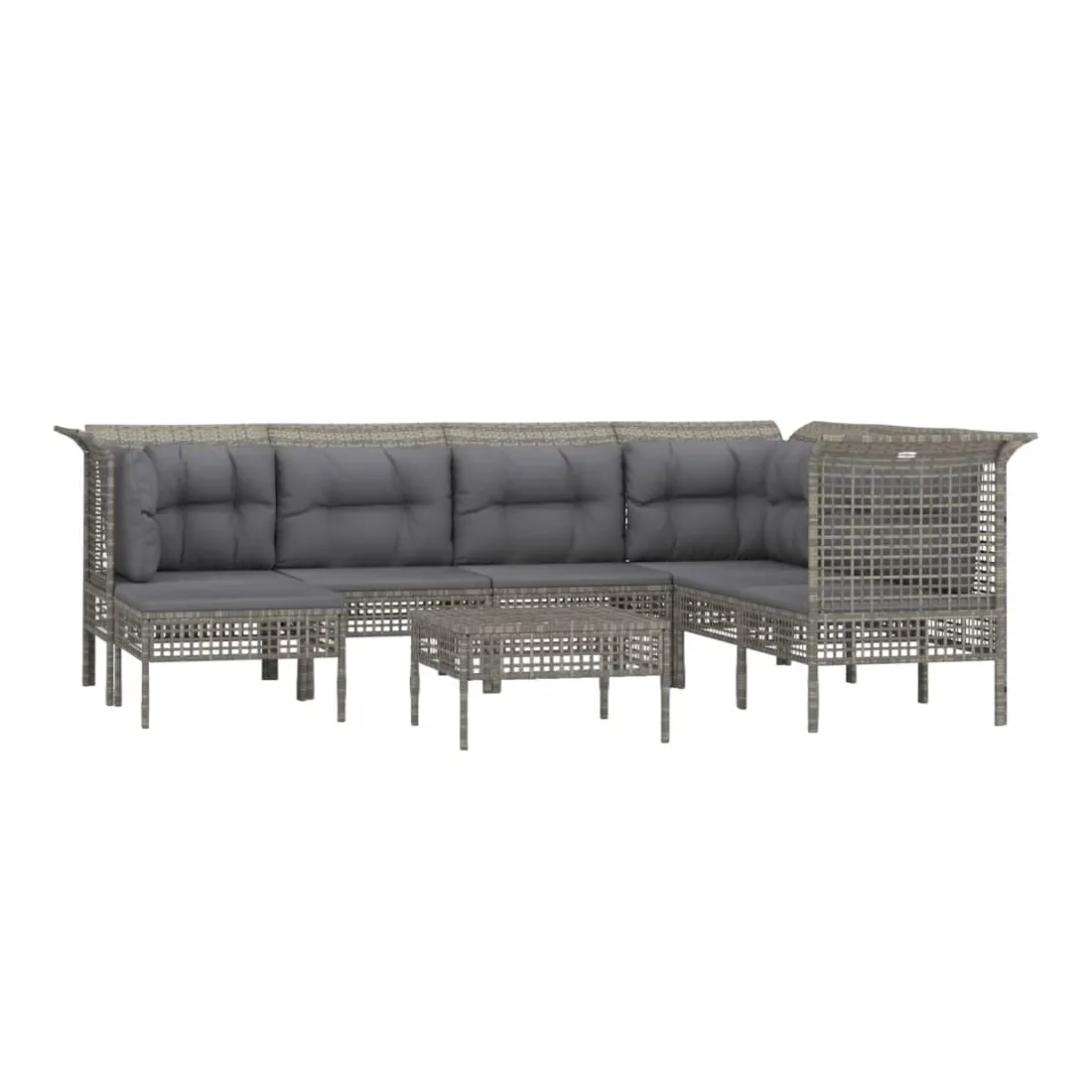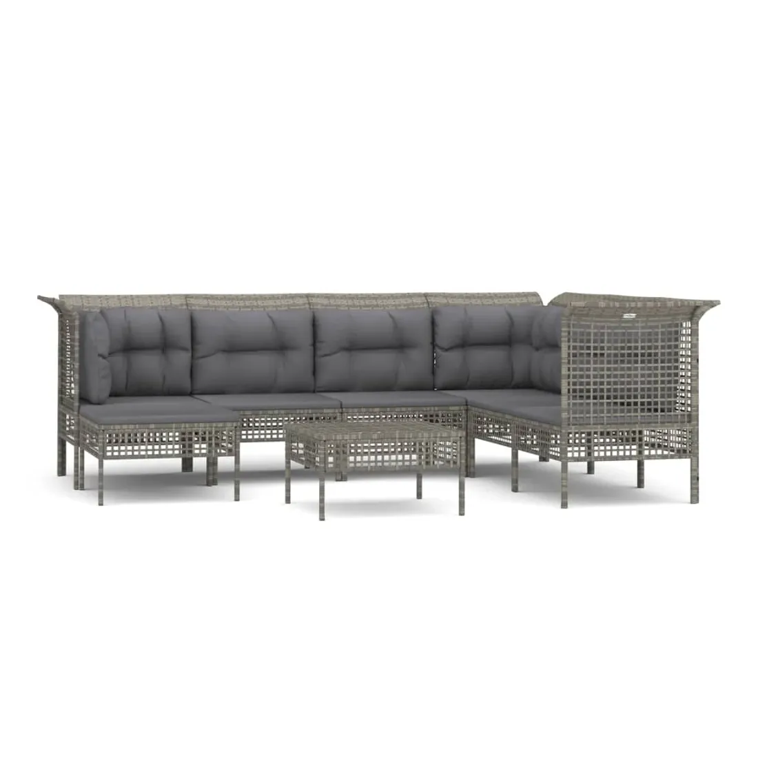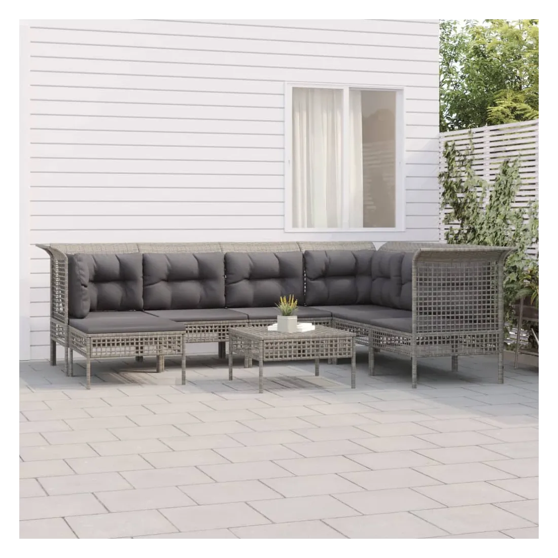 Salon de jardin 8 pcs avec coussins Gris Résine tressée