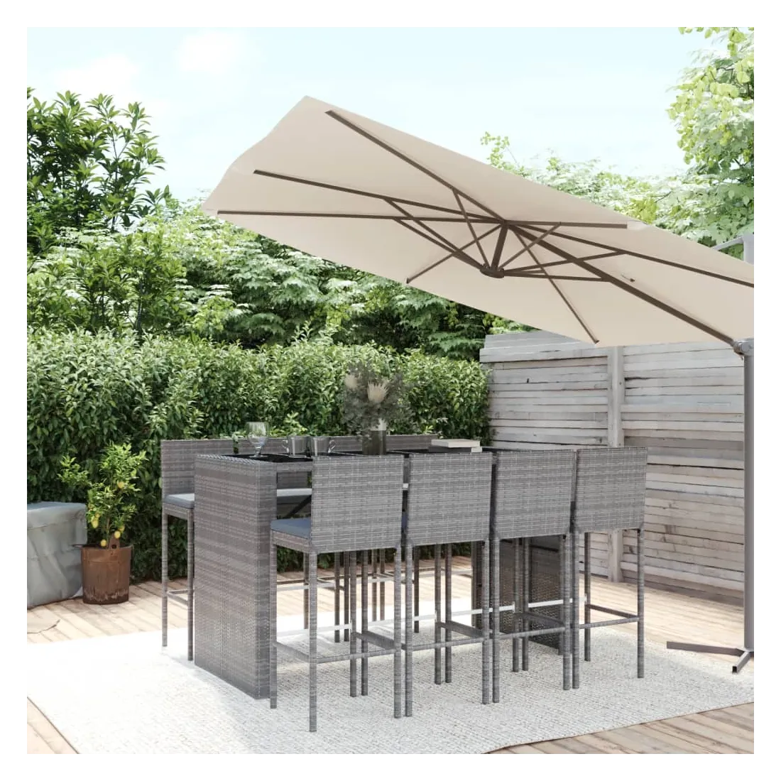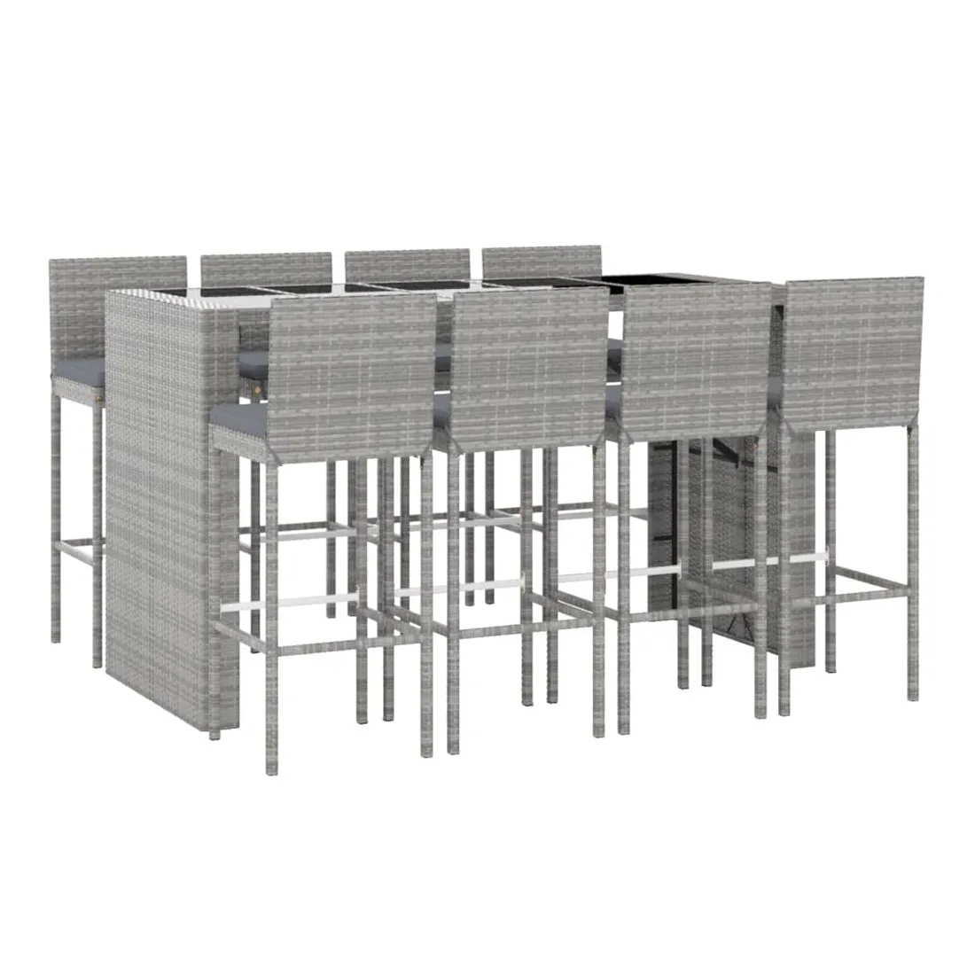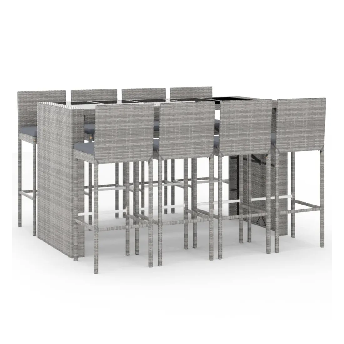 Cet ensemble de bar de jardin tendance, combinant à la fois style et fonctionnalité, est sûrement destiné à être la pièce maîtresse de votre jardin, terrasse et de tout autre espace de vie. Matériau résistant aux intempéries : la résine tressée, également connue sous le nom de rotin poly, résiste aux intempéries et est facile à nettoyer. Elle reste belle à l'extérieur pendant une longue période. Elle offre une excellente qualité, commodité et un aspect esthétique.Assise confortable : le tabouret de bar est conçu avec un dossier et un repose-pieds intégré pour vous offrir une assise confortable. Le coussin de siège bien rembourré offre un confort ultime pendant votre temps assis.Dessus en verre trempé : le dessus est en verre trempé, ce qui le rend facile à nettoyer. De plus, il offre un excellent support pour placer vos boissons, collations et vos décorations préférées.Cadre robuste et stable : les cadres en acier enduit de poudre rendent l'ensemble de pub robuste et stable pour une utilisation quotidienne à l'extérieur.Applications larges : la table et le tabouret de bar, avec leur design remarquable, créent un aspect général agréable qui s'intègre sans effort dans n'importe quel décor. Bon à savoir :Pour faciliter au maximum le montage, chaque produit est livré avec des instructions.Remarque :Pour que vos meubles d'extérieur restent beaux, nous vous recommandons de les protéger avec une housse imperméable.