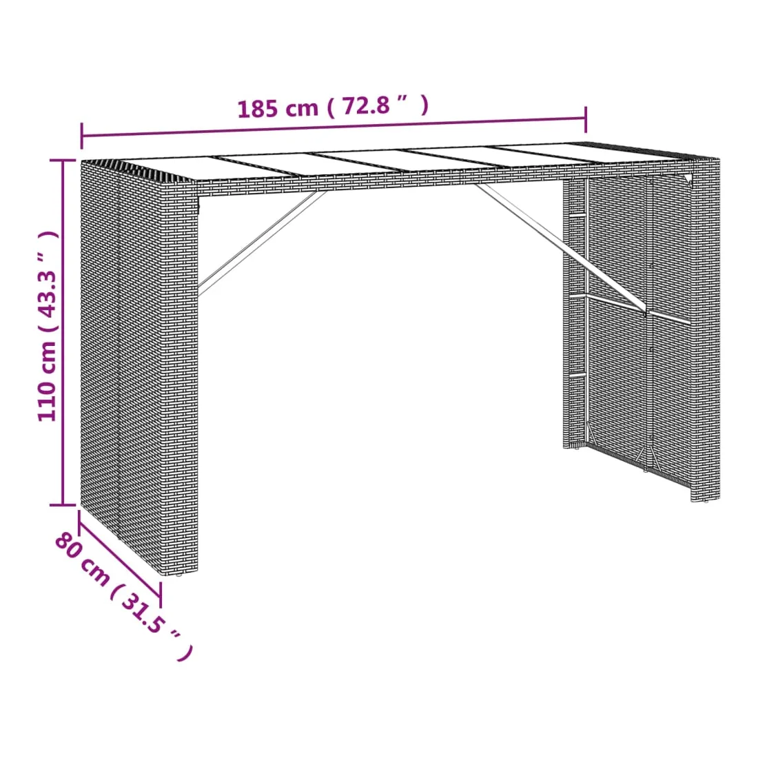 - Dimensions : 185 x 80 x 110 cm (L x l x H)