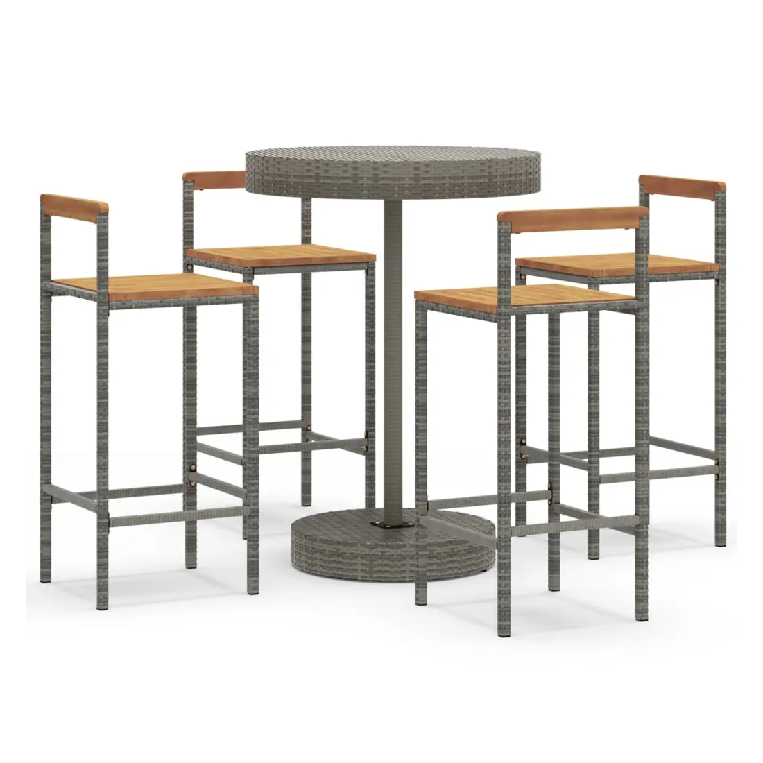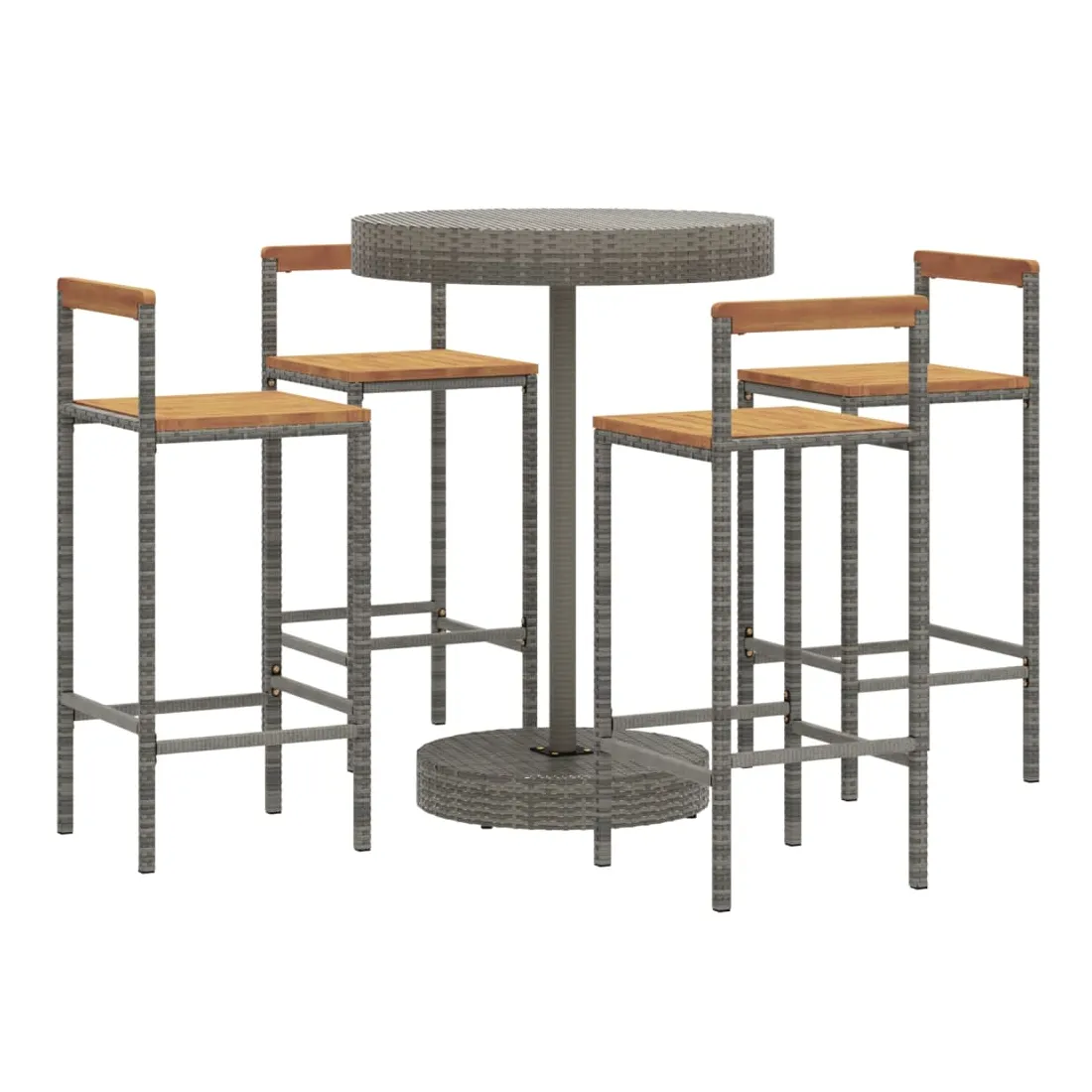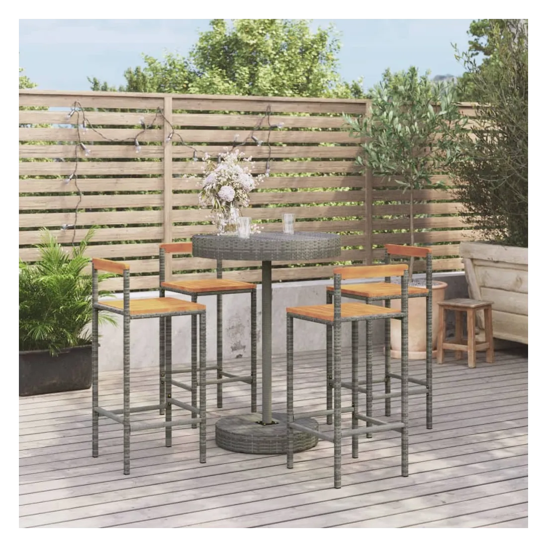 Cet ensemble de bar de jardin tendance, combinant à la fois style et fonctionnalité, est sûrement destiné à être la pièce maîtresse de votre jardin, terrasse et de tout autre espace de vie. Matériau résistant aux intempéries : la résine tressée, également connue sous le nom de rotin poly, résiste aux intempéries et est facile à nettoyer. Elle reste belle à l'extérieur pendant une longue période. Elle offre une excellente qualité, commodité et un aspect esthétique.Assise confortable : le tabouret de bar est conçu avec un repose-pied intégré pour vous offrir une expérience d'assise confortable. L'assise en bois confère au tabouret un aspect naturel et agréable tout en assurant sa stabilité.Table pratique : la table de bar ronde est idéale pour accueillir vos boissons, vos snacks et vos décorations préférées.Cadre robuste et stable : les cadres en acier enduit de poudre rendent l'ensemble de pub robuste et stable pour une utilisation quotidienne à l'extérieur.Applications larges : la table et les tabourets de bar, avec leur design remarquable, créent un aspect général agréable qui s'intègre sans effort dans n'importe quel décor. Bon à savoir :Pour faciliter au maximum le montage, chaque produit est livré avec des instructions.Remarque :Pour que vos meubles d'extérieur restent beaux, nous vous recommandons de les protéger avec une housse imperméable.