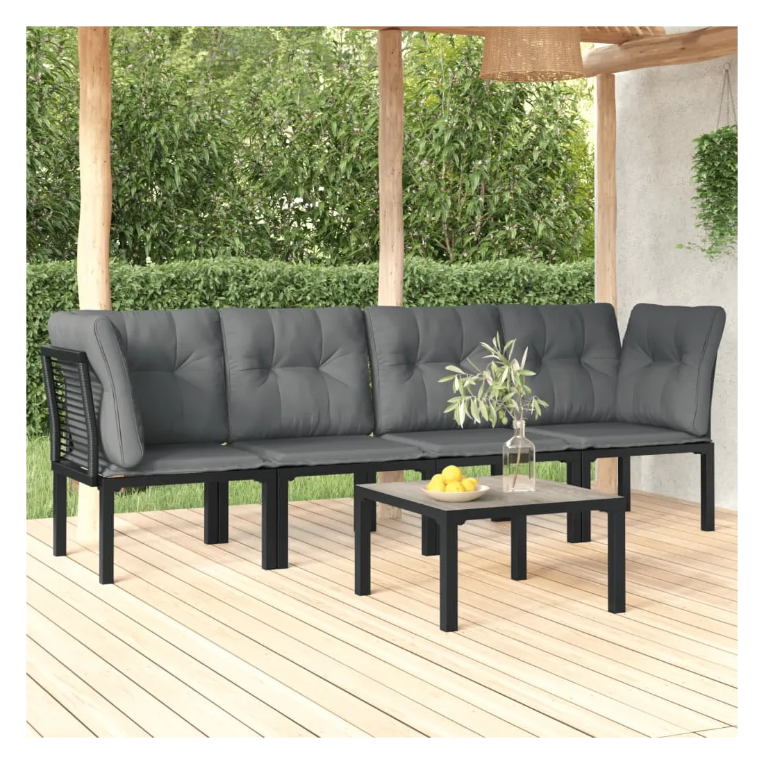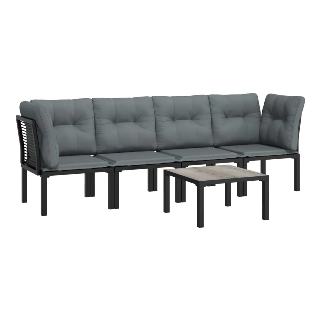 Cet ensemble de salon de jardin tendance, au design élégant et contemporain, est un choix parfait pour vous détendre dans votre jardin. Matériau résistant aux intempéries : la résine tressée, également connue sous le nom de rotin poly, résiste aux intempéries et est facile à nettoyer. Elle reste belle à l'extérieur pendant une longue période. Elle offre une excellente qualité, commodité et un aspect esthétique. Cadre robuste et stable : le cadre en acier enduit de poudre de l'ensemble de salon garantit la robustesse et la stabilité.Expérience d'assise confortable : le dossier ajoute un confort d'assise supplémentaire à la chaise. De plus, les coussins bien rembourrés vous permettent de vous asseoir confortablement.Conception modulaire : le salon d'extérieur est flexible et facile à déplacer, vous pouvez donc le combiner avec d'autres segments modulaires dans la boutique en ligne pour créer vos propres configurations d'ensemble de salon de jardin !Table pratique : le dessus robuste de la table basse de jardin est parfait pour placer des repas, des boissons et d'autres objets décoratifs. Bon à savoir :Pour faciliter au maximum le montage, chaque produit est livré avec des instructions.Remarque :Pour que vos meubles d'extérieur restent beaux, nous vous recommandons de les protéger avec une housse imperméable.