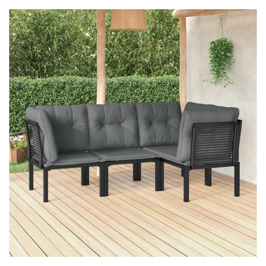 Cet ensemble de salon de jardin tendance, au design élégant et contemporain, est un choix parfait pour vous détendre dans votre jardin. Matériau résistant aux intempéries : la résine tressée, également connue sous le nom de rotin poly, résiste aux intempéries et est facile à nettoyer. Elle reste belle à l'extérieur pendant une longue période. Elle offre une excellente qualité, commodité et un aspect esthétique. Cadre robuste et stable : le cadre en acier enduit de poudre de l'ensemble de salon garantit la robustesse et la stabilité.Expérience d'assise confortable : le dossier ajoute un confort d'assise supplémentaire à la chaise. De plus, les coussins bien rembourrés vous permettent de vous asseoir confortablement.Conception modulaire : le salon d'extérieur est flexible et facile à déplacer, vous pouvez donc le combiner avec d'autres segments modulaires dans la boutique en ligne pour créer vos propres configurations d'ensemble de salon de jardin ! Bon à savoir :Pour faciliter au maximum le montage, chaque produit est livré avec des instructions.Remarque :Pour que vos meubles d'extérieur restent beaux, nous vous recommandons de les protéger avec une housse imperméable.