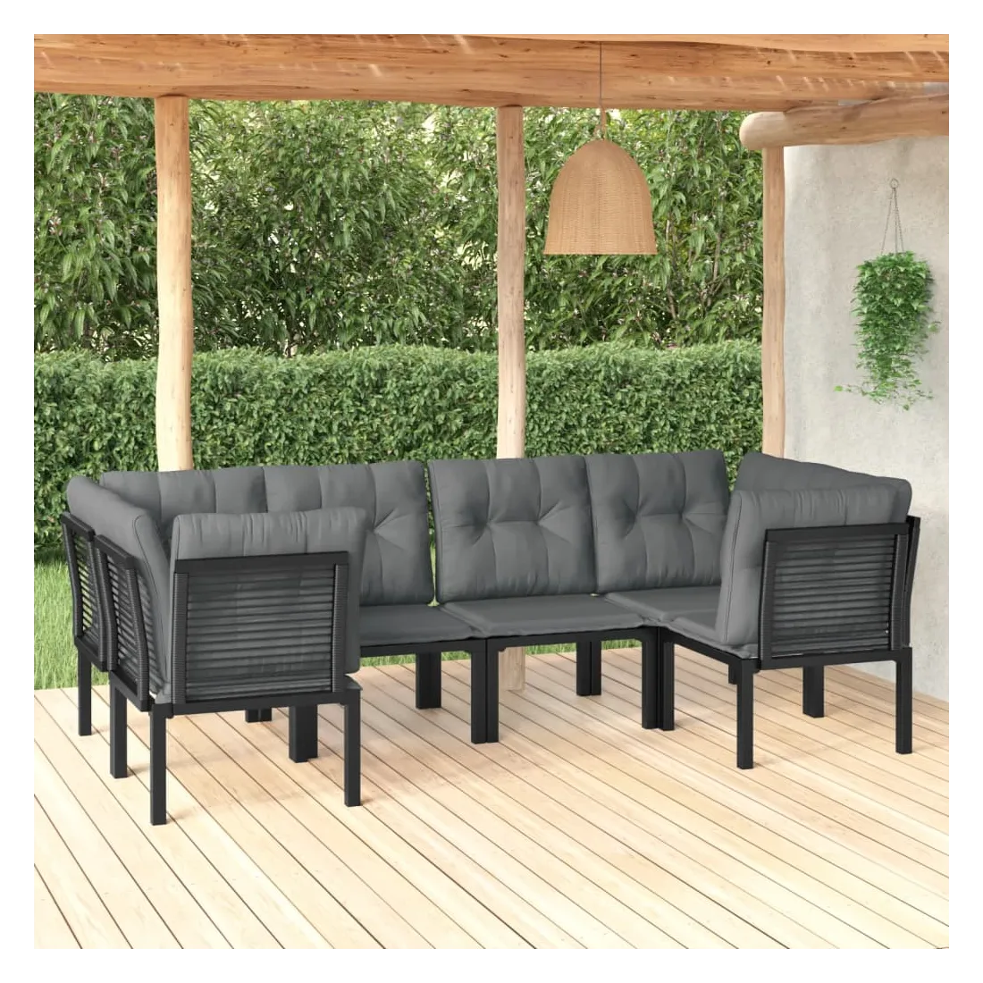 Cet ensemble de salon de jardin tendance, au design élégant et contemporain, est un choix parfait pour vous détendre dans votre jardin. Matériau résistant aux intempéries : la résine tressée, également connue sous le nom de rotin poly, résiste aux intempéries et est facile à nettoyer. Elle reste belle à l'extérieur pendant une longue période. Elle offre une excellente qualité, commodité et un aspect esthétique. Cadre robuste et stable : le cadre en acier enduit de poudre de l'ensemble de salon garantit la robustesse et la stabilité.Expérience d'assise confortable : le dossier ajoute un confort d'assise supplémentaire à la chaise. De plus, les coussins bien rembourrés vous permettent de vous asseoir confortablement.Conception modulaire : le salon d'extérieur est flexible et facile à déplacer, vous pouvez donc le combiner avec d'autres segments modulaires dans la boutique en ligne pour créer vos propres configurations d'ensemble de salon de jardin ! Bon à savoir :Pour faciliter au maximum le montage, chaque produit est livré avec des instructions.Remarque :Pour que vos meubles d'extérieur restent beaux, nous vous recommandons de les protéger avec une housse imperméable.