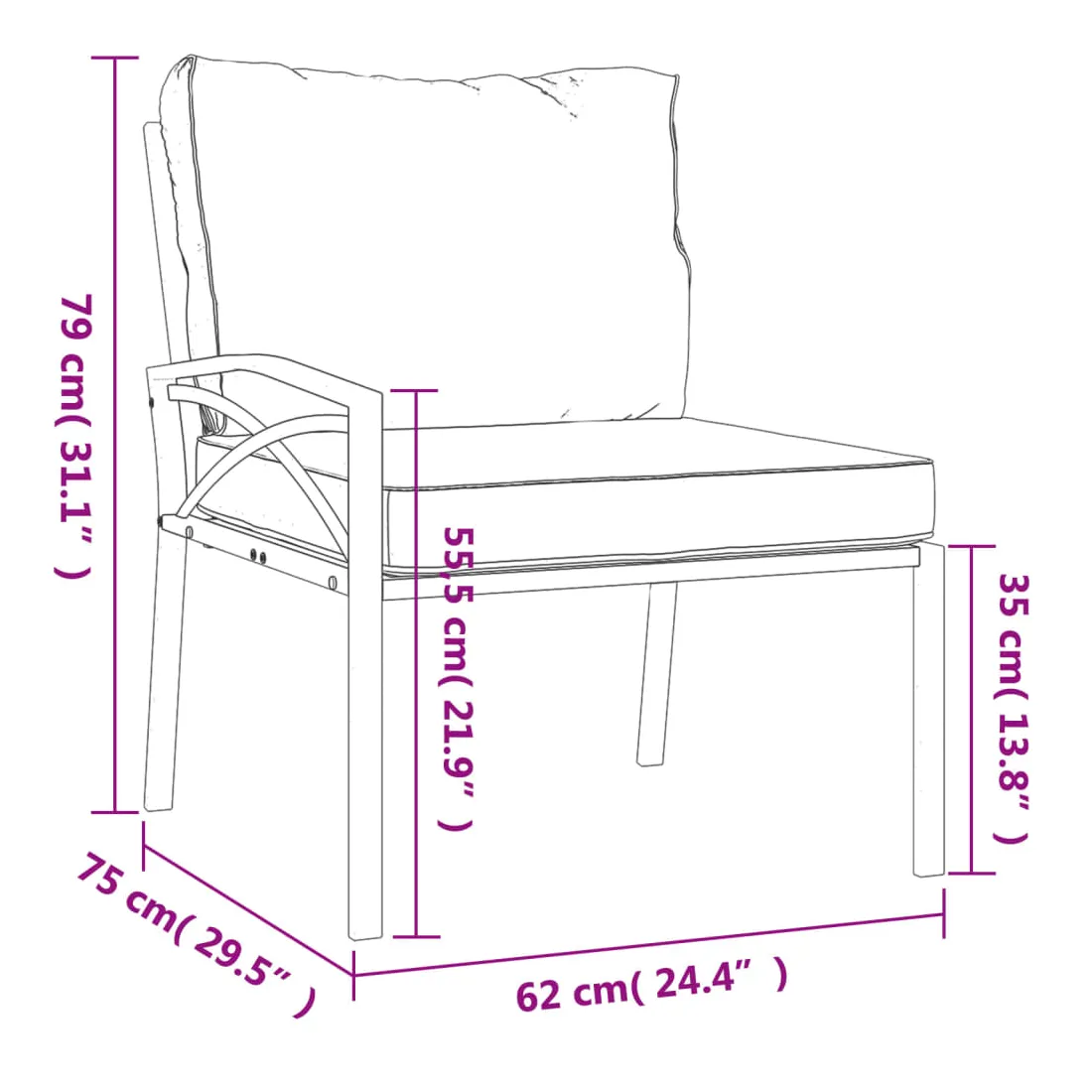 Profitez d'un moment de café confortable dans votre espace extérieur avec cet ensemble de salon de jardin ! C'est un complément parfait à votre jardin et à votre terrasse, créant une impression durable ! Matériau stable : l'acier est un matériau exceptionnellement dur et résistant. Il offre robustesse et stabilité. Le revêtement en poudre sur l'acier crée une couche protectrice contre l'usure.Coussins moelleux : les coussins épais et amovibles du salon de jardin sont inclus pour offrir le plus grand confort d'assise.Accoudoirs et dossier confortables : vos bras et votre dos peuvent se reposer confortablement grâce aux accoudoirs et au dossier.Dessus robuste : le dessus de table robuste de cette table de jardin vous offre de l'espace pour placer des collations, des paniers de fruits, des objets décoratifs, ainsi que divers autres articles essentiels. Bon à savoir :Pour faciliter au maximum le montage, chaque produit est livré avec des instructions. Remarque :Pour que vos meubles d'extérieur restent beaux, nous vous recommandons de les protéger avec une housse imperméable.