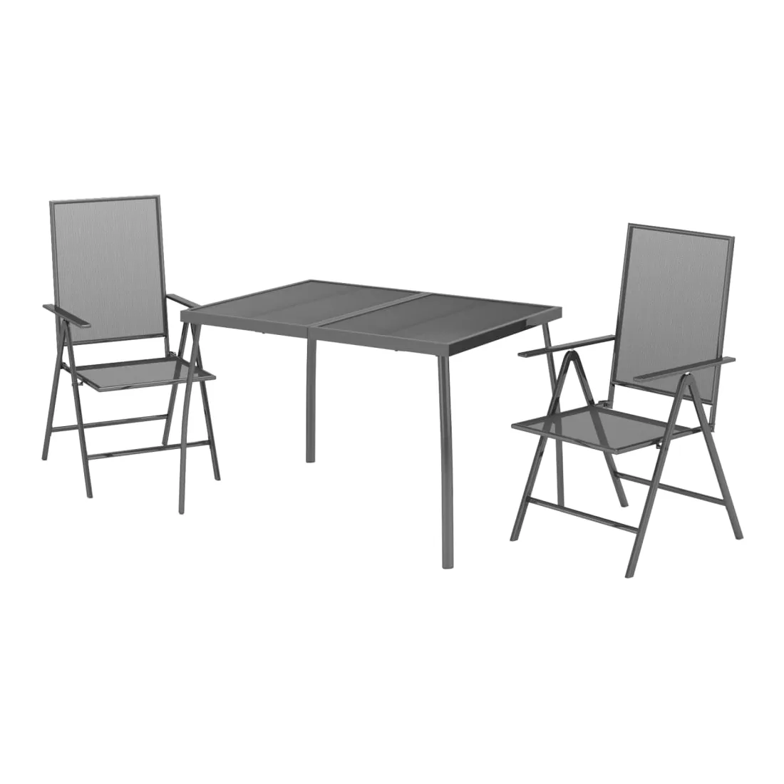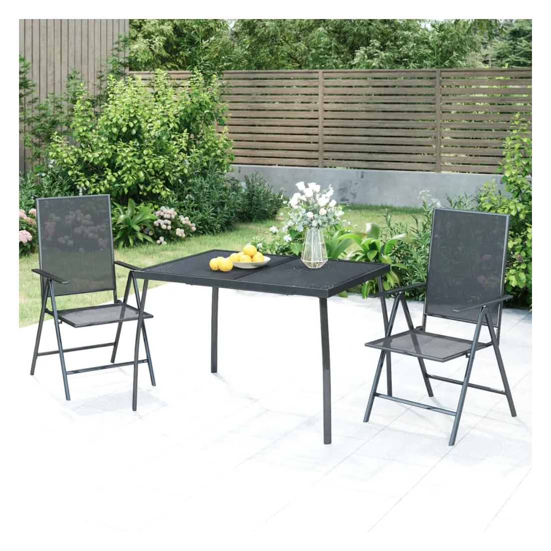 Cet ensemble de salle à manger de jardin tendance, au design élégant et contemporain, est un choix parfait pour vous détendre dans votre jardin. Matériau robuste : l'acier est un matériau exceptionnellement dur et solide. Il offre robustesse et stabilité. Le revêtement par poudre et le revêtement électronique de l'acier créent une couche protectrice contre l'usure et la corrosion.Cadre stable : le cadre en acier enduit de poudre et e-coated assure la robustesse et la stabilité de l'ensemble de salle à manger.Fonction réglable et pliable : les dossiers des chaises de salle à manger sont réglables en 6 positions selon votre confort. Vous pouvez les replier pour économiser de l'espace lorsqu'ils ne sont pas utilisés.Table pratique : le dessus robuste de la table à manger est parfait pour placer des repas, des boissons et d'autres objets décoratifs.Design en maille : l'ensemble de salle à manger d'extérieur avec un design en maille a un aspect simple et intemporel et convient aux balcons, porches, jardins, terrasses, etc. Remarque :Pour que vos meubles d'extérieur restent beaux, nous vous recommandons de les protéger avec une housse imperméable.