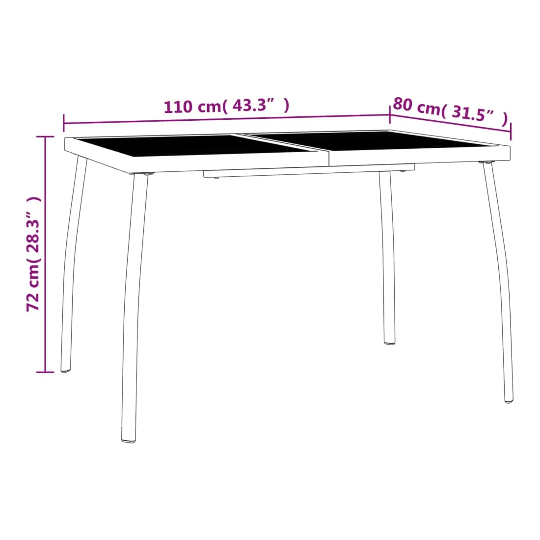 - longueur de table de 110 cm