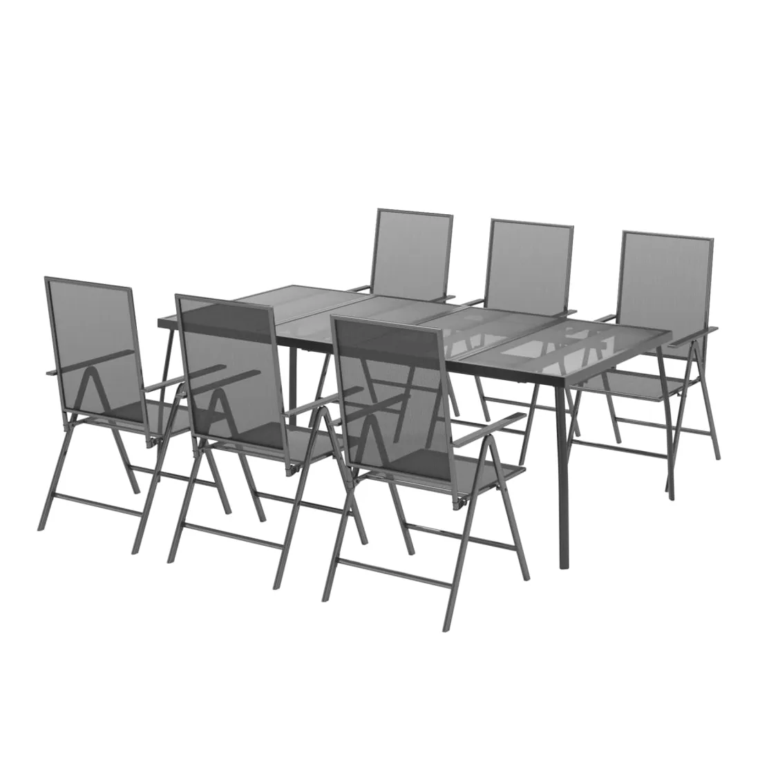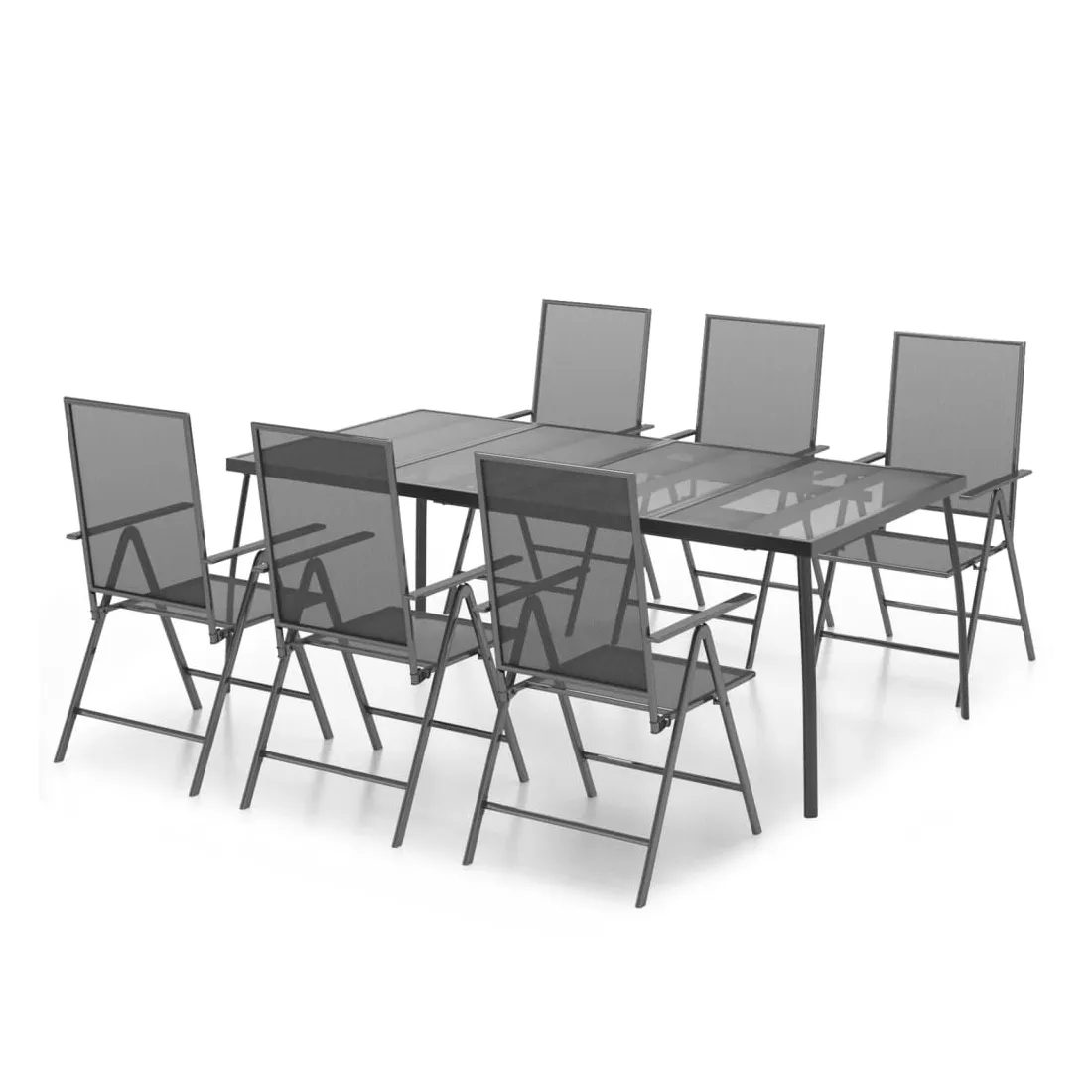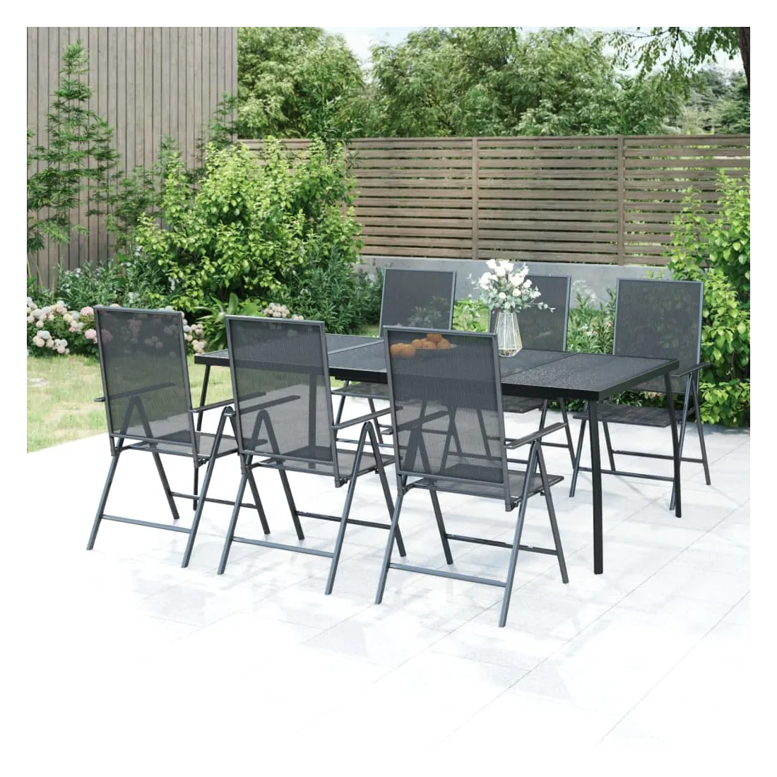 Cet ensemble de salle à manger de jardin tendance, au design élégant et contemporain, est un choix parfait pour vous détendre dans votre jardin. Matériau robuste : l'acier est un matériau exceptionnellement dur et solide. Il offre robustesse et stabilité. Le revêtement par poudre et le revêtement électronique de l'acier créent une couche protectrice contre l'usure et la corrosion.Cadre stable : le cadre en acier enduit de poudre et e-coated assure la robustesse et la stabilité de l'ensemble de salle à manger.Fonction réglable et pliable : les dossiers des chaises de salle à manger sont réglables en 6 positions selon votre confort. Vous pouvez les replier pour économiser de l'espace lorsqu'ils ne sont pas utilisés.Table pratique : le dessus robuste de la table à manger est parfait pour placer des repas, des boissons et d'autres objets décoratifs.Design en maille : l'ensemble de salle à manger d'extérieur avec un design en maille a un aspect simple et intemporel et convient aux balcons, porches, jardins, terrasses, etc. Remarque :Pour que vos meubles d'extérieur restent beaux, nous vous recommandons de les protéger avec une housse imperméable.