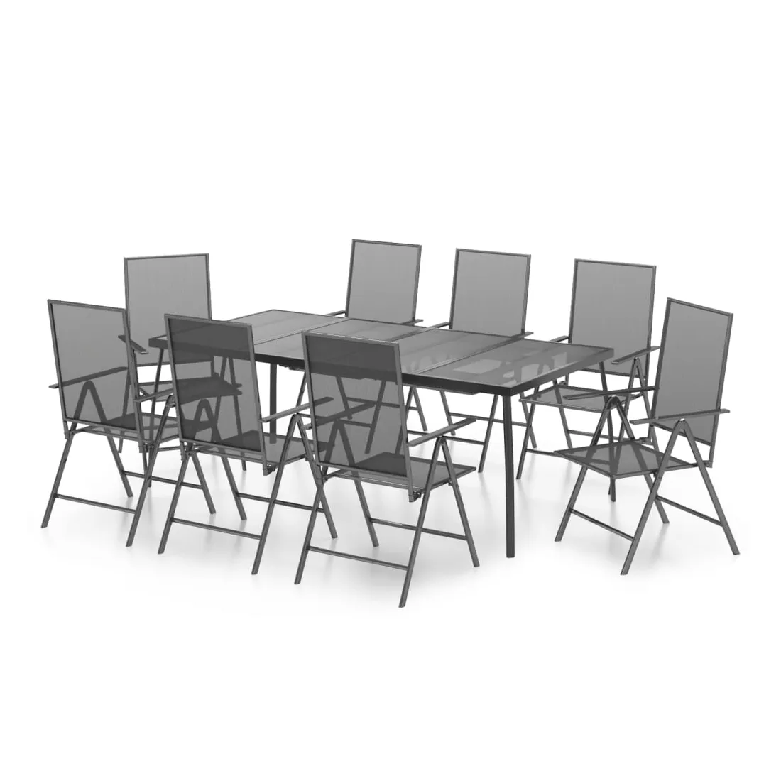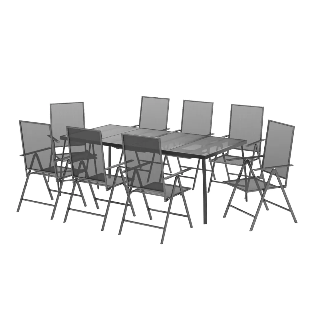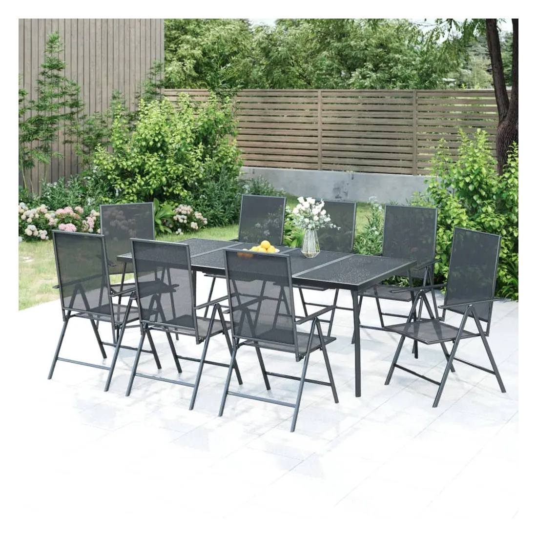 Cet ensemble de salle à manger de jardin tendance, au design élégant et contemporain, est un choix parfait pour vous détendre dans votre jardin. Matériau robuste : l'acier est un matériau exceptionnellement dur et solide. Il offre robustesse et stabilité. Le revêtement par poudre et le revêtement électronique de l'acier créent une couche protectrice contre l'usure et la corrosion.Cadre stable : le cadre en acier enduit de poudre et e-coated assure la robustesse et la stabilité de l'ensemble de salle à manger.Fonction réglable et pliable : les dossiers des chaises de salle à manger sont réglables en 6 positions selon votre confort. Vous pouvez les replier pour économiser de l'espace lorsqu'ils ne sont pas utilisés.Table pratique : le dessus robuste de la table à manger est parfait pour placer des repas, des boissons et d'autres objets décoratifs.Design en maille : l'ensemble de salle à manger d'extérieur avec un design en maille a un aspect simple et intemporel et convient aux balcons, porches, jardins, terrasses, etc. Remarque :Pour que vos meubles d'extérieur restent beaux, nous vous recommandons de les protéger avec une housse imperméable.