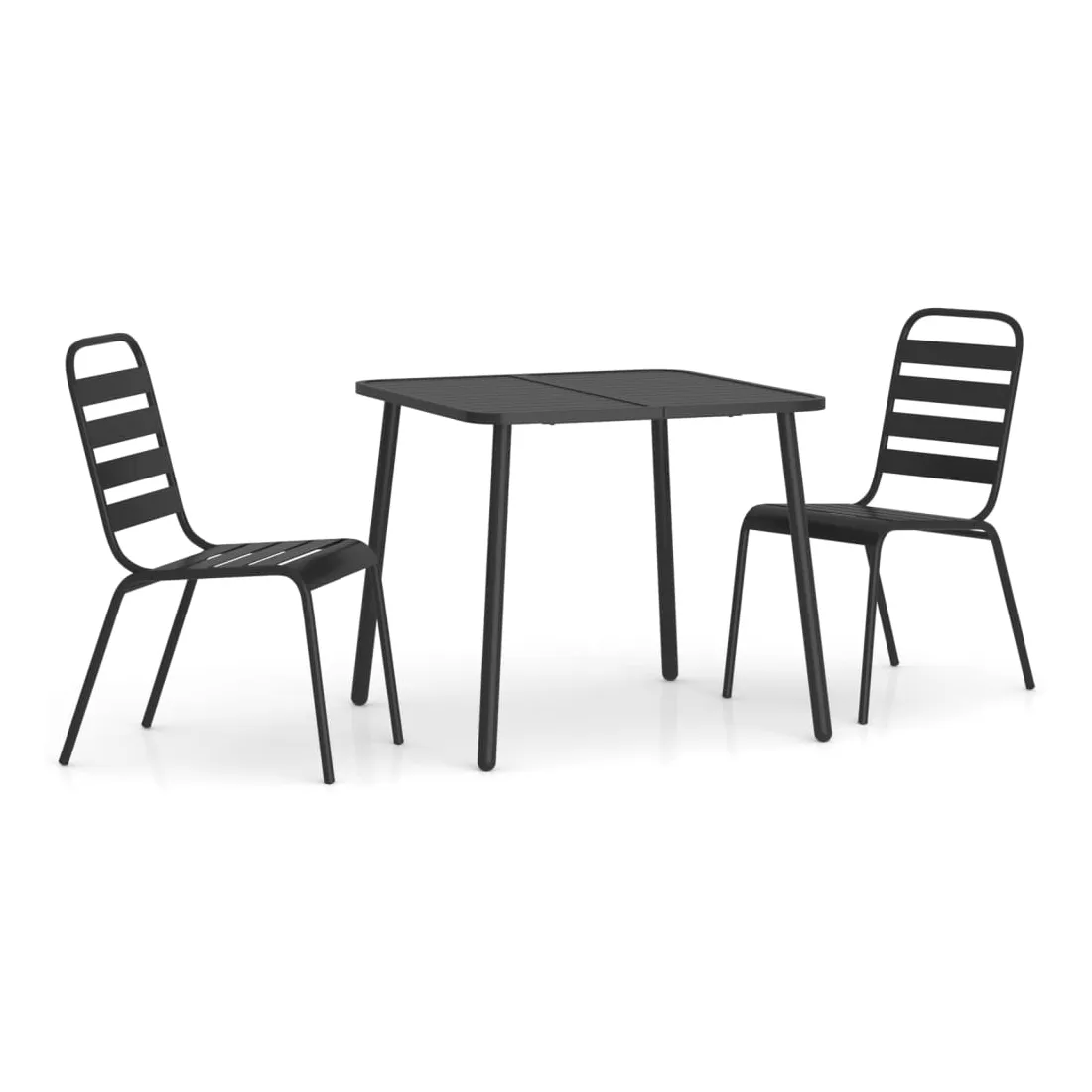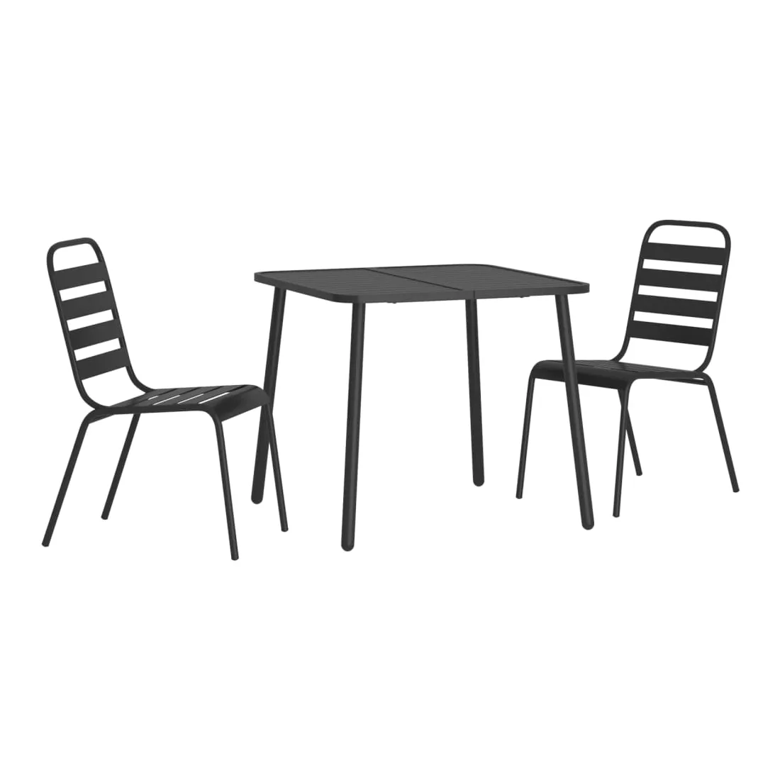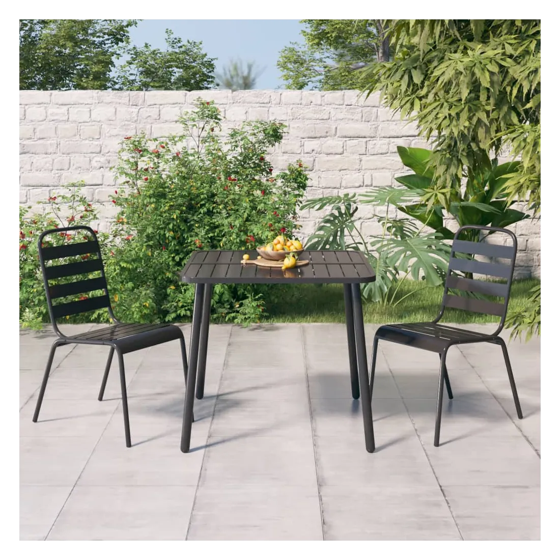 Cet ensemble de salle à manger de jardin tendance, au design élégant et contemporain, est un choix parfait pour vous détendre dans votre jardin. Matériau robuste : l'acier est un matériau exceptionnellement dur et solide. Il offre robustesse et stabilité. Le revêtement par poudre et le revêtement électronique de l'acier créent une couche protectrice contre l'usure et la corrosion.Cadre stable : le cadre en acier enduit de poudre et e-coated assure la robustesse et la stabilité de l'ensemble de salle à manger.Fonction empilable : les chaises de salle à manger sont empilables pour économiser de l'espace lorsqu'elles ne sont pas utilisées.Table pratique : le dessus robuste de la table à manger est parfait pour placer des repas, des boissons et d'autres objets décoratifs.Design à lattes : la table à manger de jardin avec un design à lattes est simple et intemporelle et convient aux balcons, porches, jardins, terrasses, etc. Remarque :Pour que vos meubles d'extérieur restent beaux, nous vous recommandons de les protéger avec une housse imperméable.