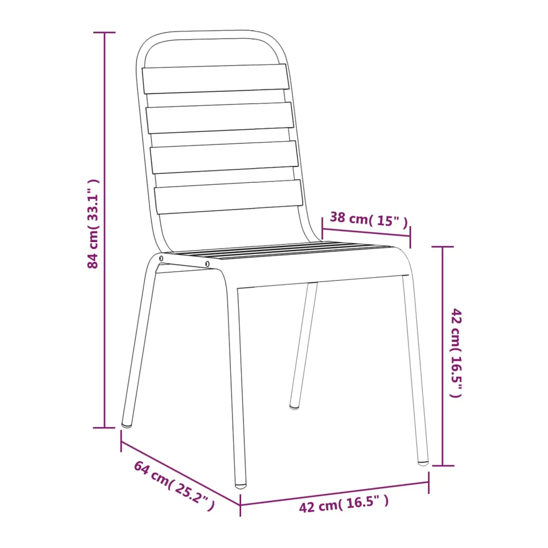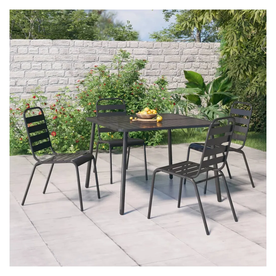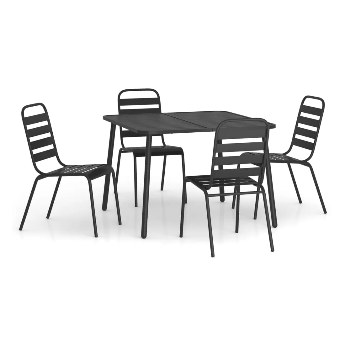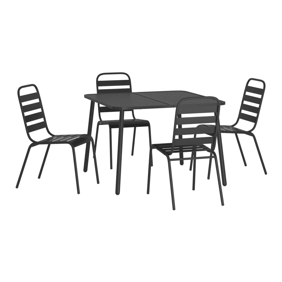 Cet ensemble de salle à manger de jardin tendance, au design élégant et contemporain, est un choix parfait pour vous détendre dans votre jardin. Matériau robuste : l'acier est un matériau exceptionnellement dur et solide. Il offre robustesse et stabilité. Le revêtement par poudre et le revêtement électronique de l'acier créent une couche protectrice contre l'usure et la corrosion.Cadre stable : le cadre en acier enduit de poudre et e-coated assure la robustesse et la stabilité de l'ensemble de salle à manger.Fonction empilable : les chaises de salle à manger sont empilables pour économiser de l'espace lorsqu'elles ne sont pas utilisées.Table pratique : le dessus robuste de la table à manger est parfait pour placer des repas, des boissons et d'autres objets décoratifs.Design à lattes : la table à manger de jardin avec un design à lattes est simple et intemporelle et convient aux balcons, porches, jardins, terrasses, etc. Remarque :Pour que vos meubles d'extérieur restent beaux, nous vous recommandons de les protéger avec une housse imperméable.