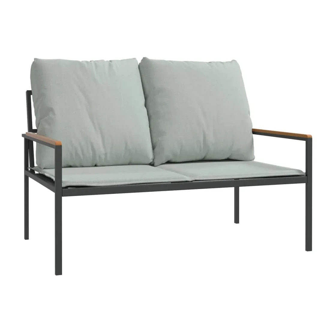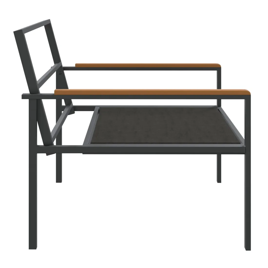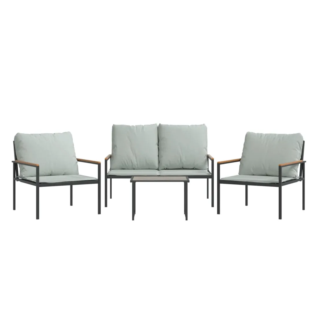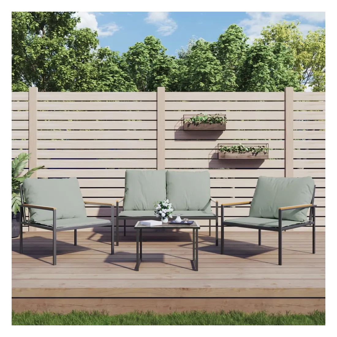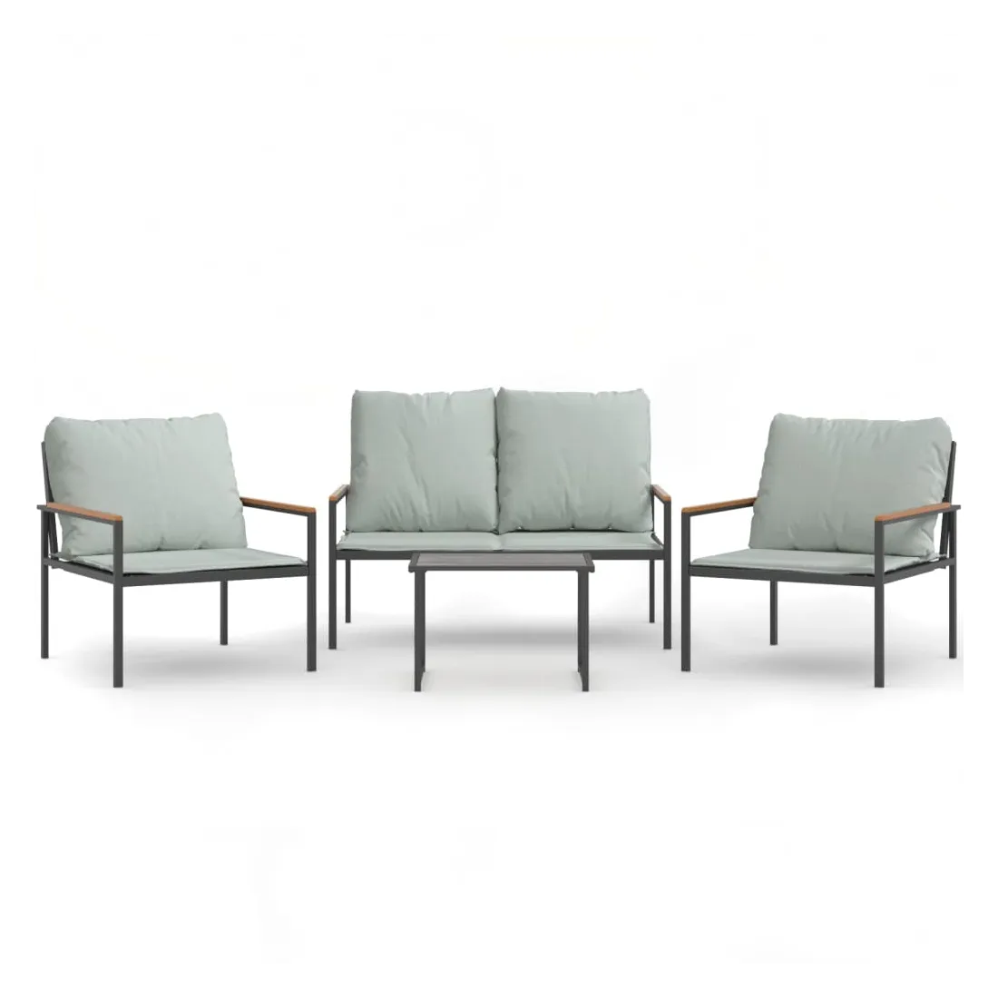 Cet ensemble de salon de jardin tendance, au design élégant et contemporain, est un excellent choix pour vous détendre dans votre jardin. Matériau durable : le tissu en textilène permet à l'air de circuler librement à travers lui tout en étant résistant aux rayons UV. Le textilène est donc idéal pour les temps chauds. En tant que matériau durable et solide, il est très résistant aux déchirures, aux perforations et aux moisissures.Cadre robuste et stable : les cadres en acier enduit de poudre rendent l'ensemble de salon robuste et stable pour une utilisation quotidienne en extérieur.Dessus de table stable : le dessus de table stable de la table de jardin est parfait pour placer des boissons, des aliments et d'autres objets décoratifs.Expérience d'assise confortable : les dossiers et les accoudoirs ajoutent un confort d'assise supplémentaire aux chaises de jardin et au banc de jardin. De plus, les coussins bien rembourrés vous permettent de vous asseoir confortablement. Remarque :Pour que vos meubles d'extérieur restent beaux, nous vous recommandons de les protéger avec une housse imperméable.