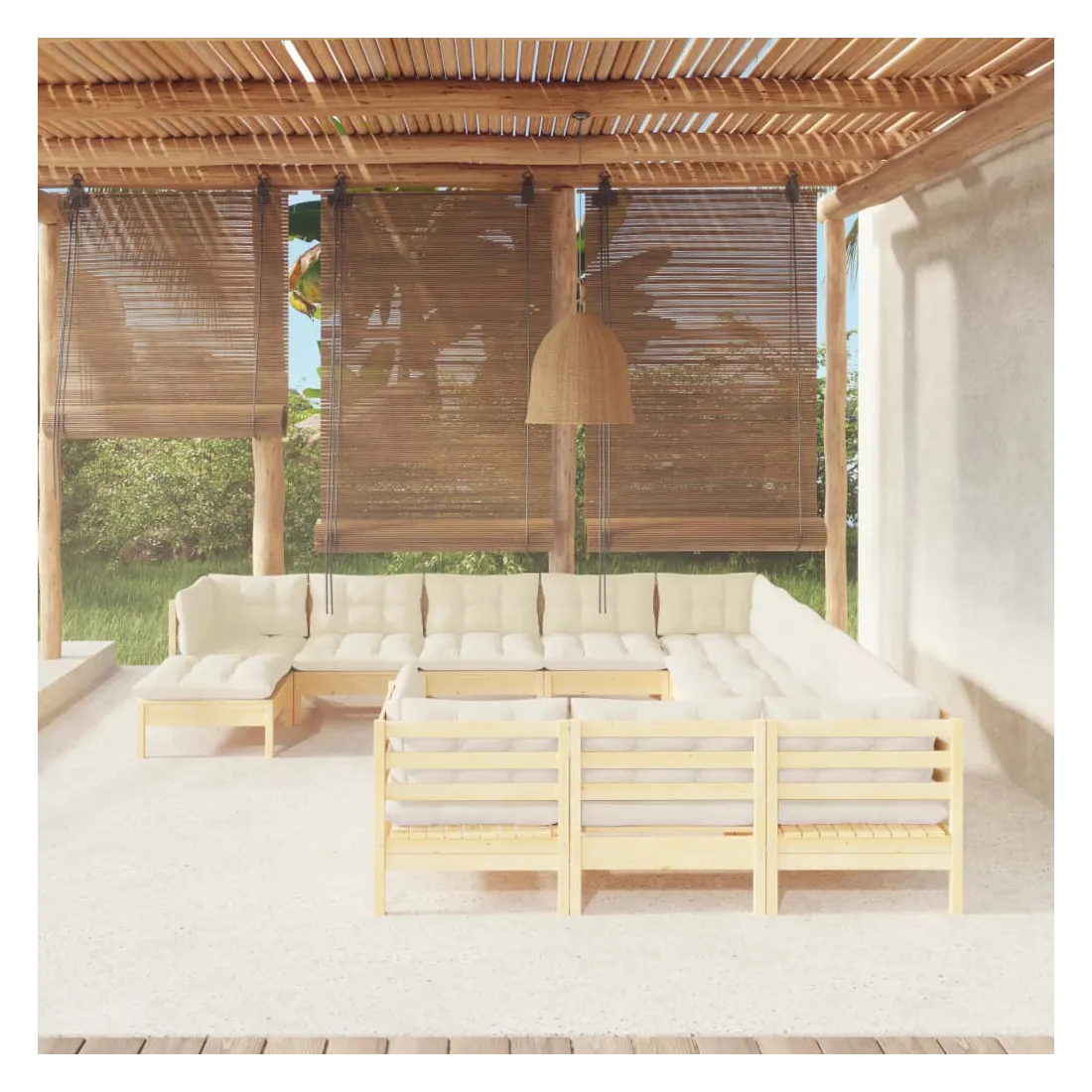 Cet ensemble de salon de jardin en bois est un choix excellent pour vous détendre et profiter du bon temps, faire une sieste ou discuter avec votre famille ou vos amis. Le salon de patio est fabriqué en bois de pin massif, ce qui le rend robuste et stable. Les coussins ajoutent un confort supplémentaire. Vous pouvez le combiner avec d’autres segments modulaires pour créer vos propres configurations de salon de jardin ! Remarque : afin de prolonger la durée de vie des meubles d'extérieur, nous vous recommandons de les protéger avec une housse imperméable.