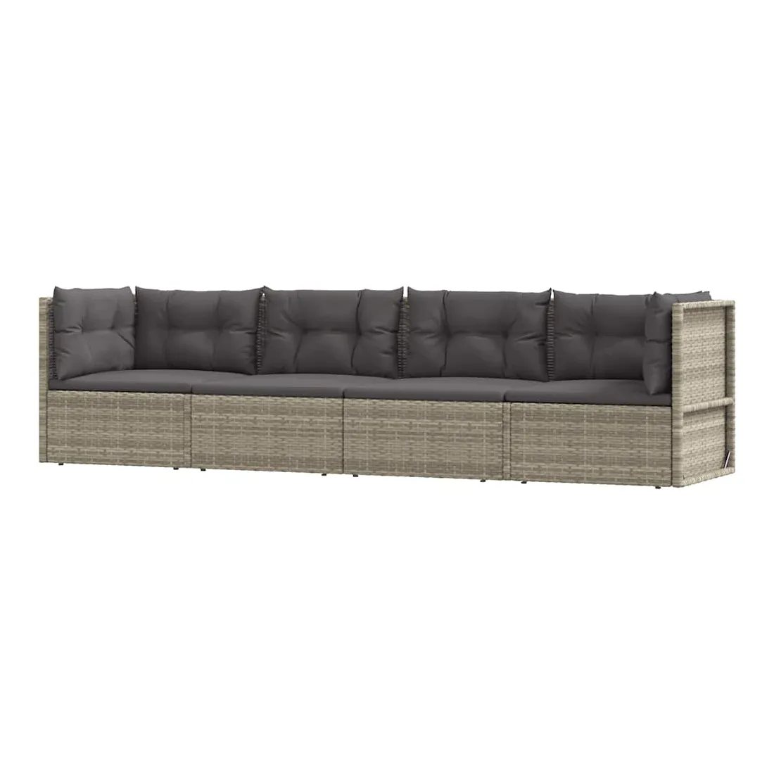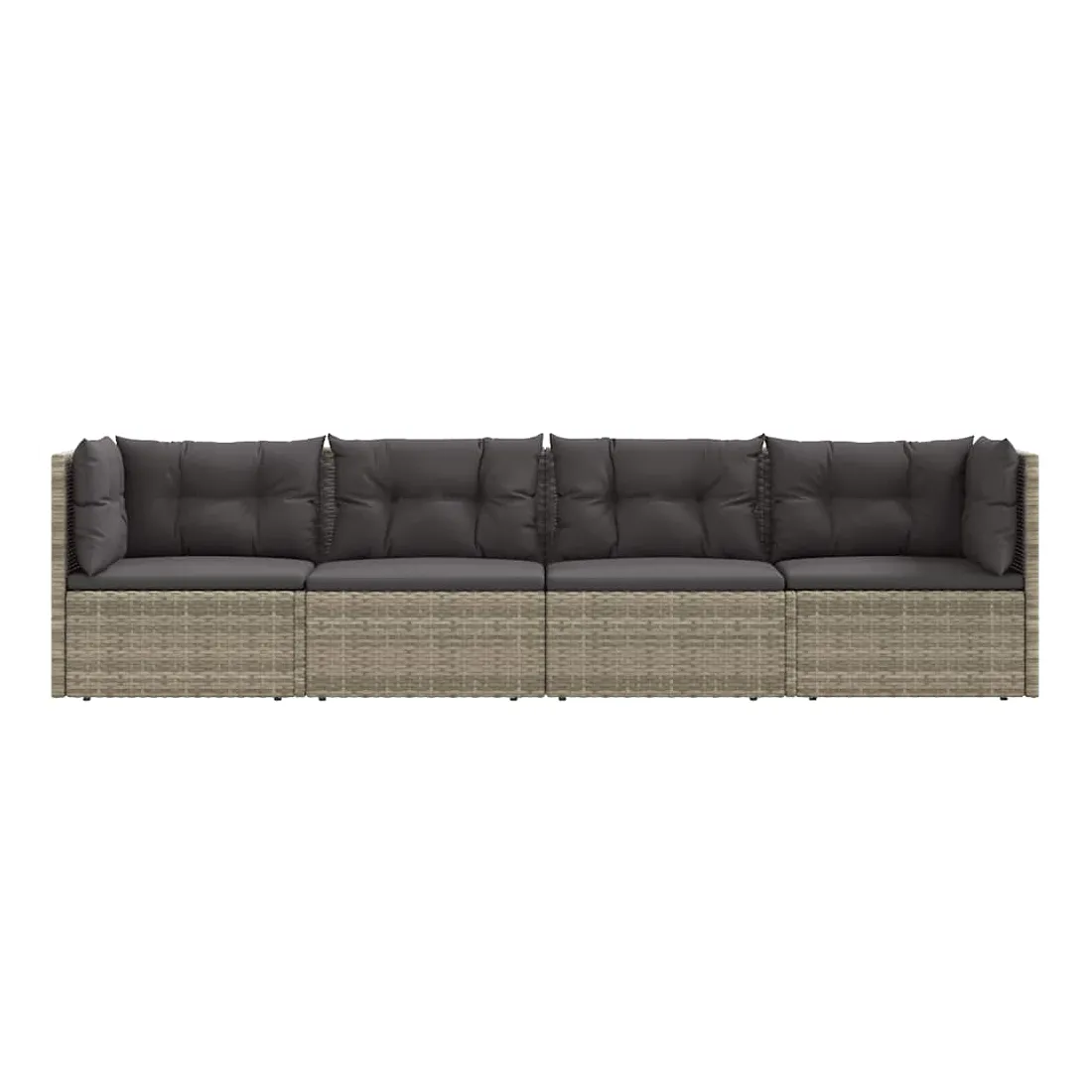 Salon de jardin 4 pcs avec coussins Gris Résine tressée