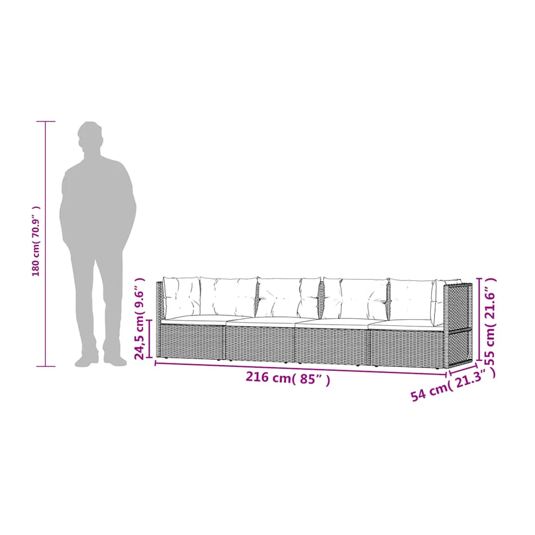 vidaXLCet ensemble de salon de jardin tendance, au design élégant et contemporain, est un excellent choix pour vous détendre dans votre jardin. Matériau durable : la résine tressée, également connue sous le nom de rotin poly, résiste aux intempéries et est facile à nettoyer. Elle reste belle à l'extérieur pendant une longue période. Elle est plus économique que d'autres matériaux, tout en offrant une excellente qualité, une commodité et un aspect esthétique.Cadre stable : l'acier est un matériau exceptionnellement dur et résistant. Il offre robustesse et stabilité. Le revêtement en poudre sur l'acier crée une couche protectrice contre l'usure.Conception modulaire : chaque pièce est facile à déplacer, ce qui vous permet de créer facilement différents agencements adaptés à vos besoins. Vous pouvez également trouver les pièces individuelles dans notre boutique en ligne pour arranger vos propres modèles de meubles.Assise réglable : l'assise du canapé d'angle peut être réglée selon trois angles pour une position assise ou allongée plus confortable.Expérience de siège confortable : avec les coussins de siège et de dossier bien rembourrés, l'ensemble de salon d'extérieur est très confortable. Bon à savoir :Pour faciliter au maximum le montage, chaque produit est livré avec des instructions. Remarque :Pour que vos meubles d'extérieur restent beaux, nous vous recommandons de les protéger avec une housse imperméable.