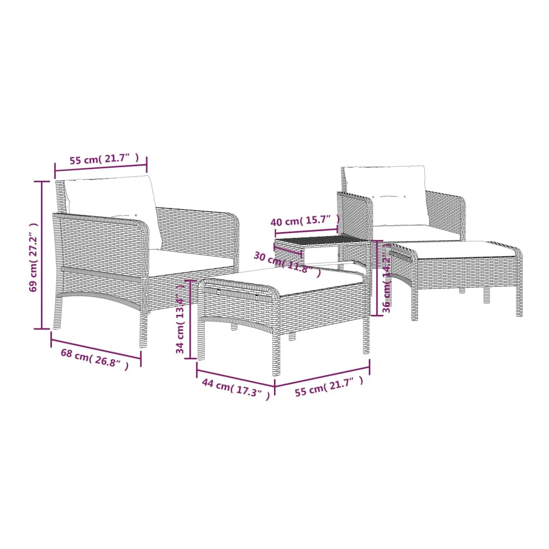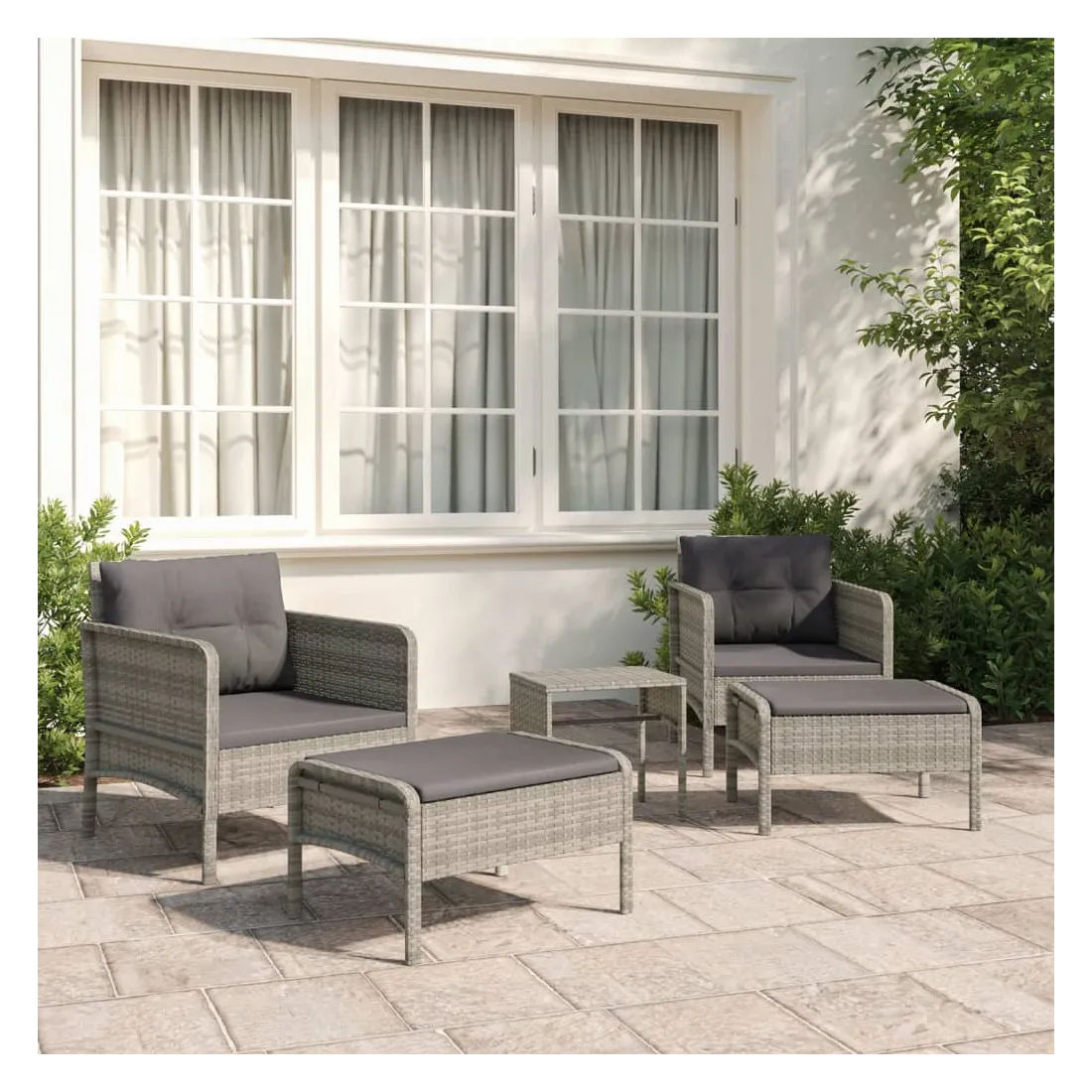 Profitez d'un moment de café confortable dans votre espace extérieur avec cet ensemble de salon de jardin ! C'est un complément parfait à votre jardin et à votre terrasse, créant une impression durable ! Matériau haut de gamme : la résine tressée est un matériau de résistance exceptionnelle et durable dans différentes conditions météorologiques.Cadre métallique : le cadre en métal assure la solidité et la stabilité de l'ensemble de salon d'extérieur.Coussins moelleux : les coussins épais et amovibles du salon de jardin sont inclus pour offrir le plus grand confort d'assise.Accoudoirs et dossier confortables : vos bras et votre dos peuvent se reposer confortablement grâce aux accoudoirs et au dossier arrondis.Tabouret pratique : vous pouvez vous détendre et y mettre vos pieds grâce au tabouret inclus. Vous pouvez également placer le tabouret n'importe où, selon vos préférences.Dessus robuste : le dessus de table robuste de cette table basse de jardin vous offre de l'espace pour placer des collations, des paniers de fruits, des objets décoratifs, ainsi que divers autres articles essentiels. Remarque :Chaque produit est livré avec un manuel de montage dans la boîte pour un montage facile.Afin de prolonger la durée de vie de votre mobilier d'extérieur, nous vous recommandons de le protéger avec une housse imperméable.