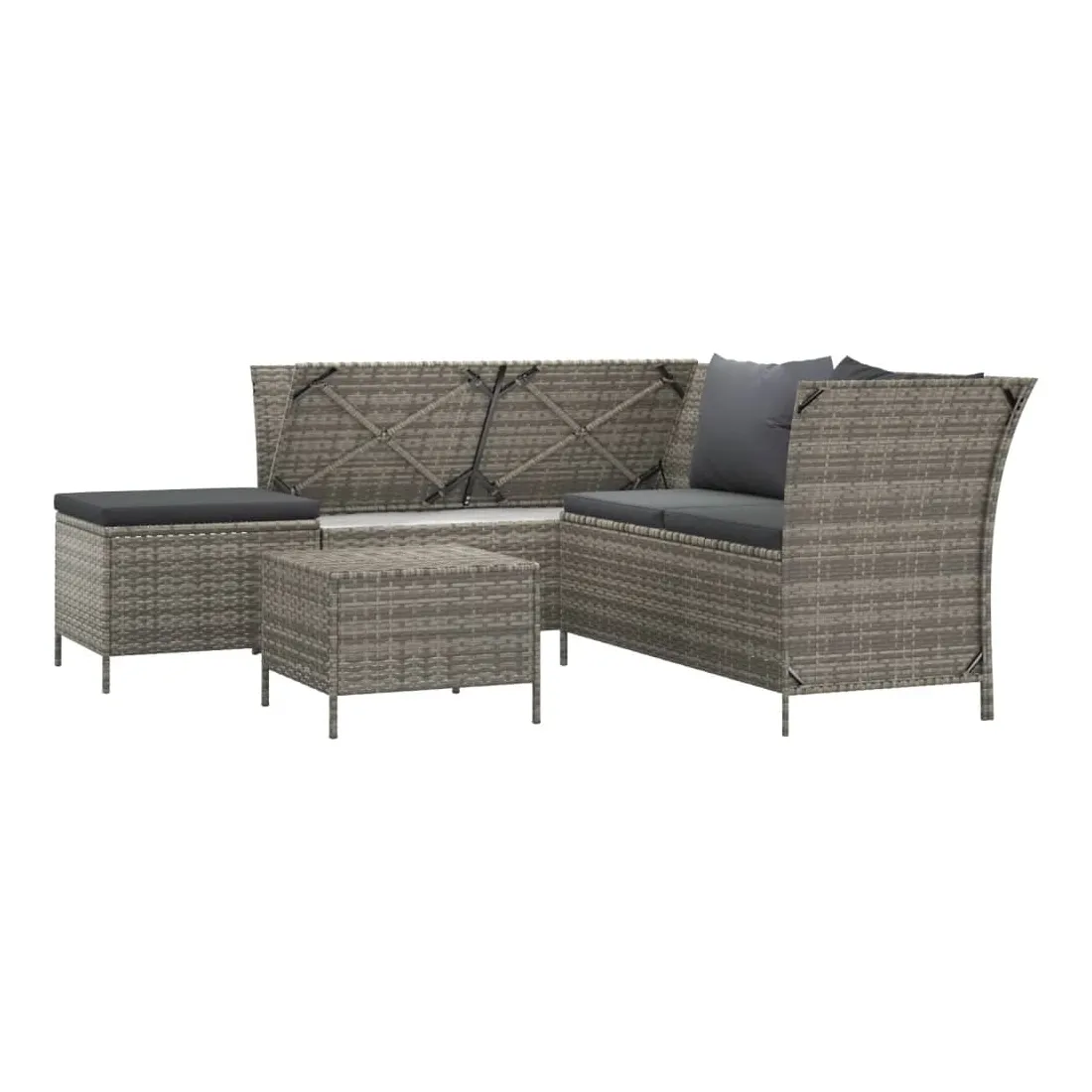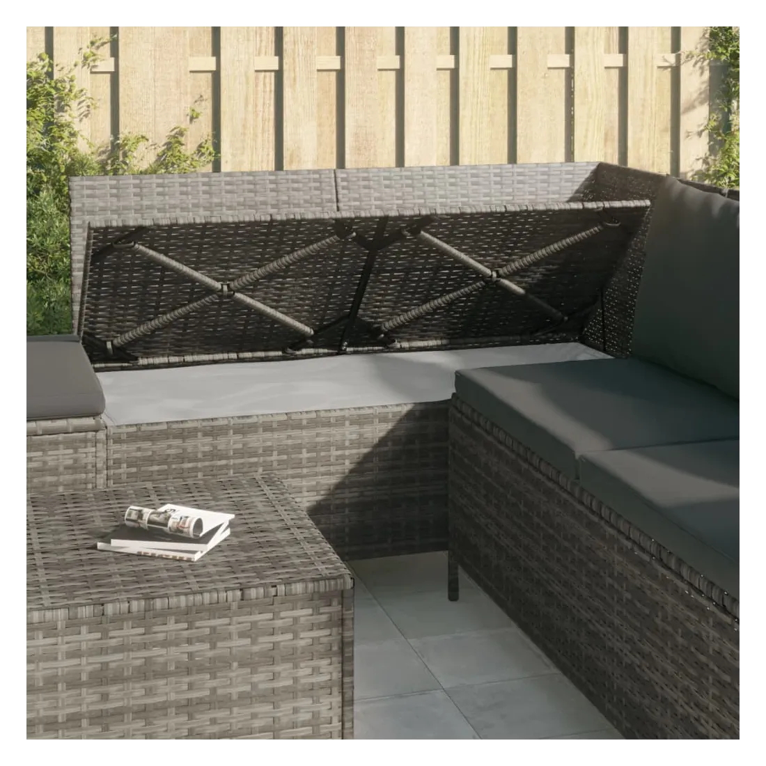 Cet ensemble de salon de jardin tendance, au design élégant et contemporain, est un choix parfait pour vous détendre dans votre jardin. Matériau durable : la résine tressée est un matériau de résistance exceptionnelle et durable dans différentes conditions météorologiques. Elle nécessite peu d'entretien. Le cadre en acier de l'ensemble de meubles de jardin assure la solidité et la stabilité. Grand espace de rangement : l'espace de rangement du canapé d'angle facilite l'organisation des articles. Il convient au rangement de vos coussins, oreillers, couvertures, jouets et autres objets. Sac résistant à l'eau : le sac résistant à l'eau à l'intérieur du canapé d'angle garde vos affaires en sécurité et protège vos objets de l'humidité.Expérience de siège confortable : des coussins et des oreillers supplémentaires sont inclus pour votre confort. Bon à savoir :Nous vous recommandons de protéger le salon avec une housse imperméable afin de prolonger la durée de vie de votre mobilier d'extérieur. Chaque produit est livré avec un manuel d'instructions dans la boîte pour un montage et une utilisation faciles.