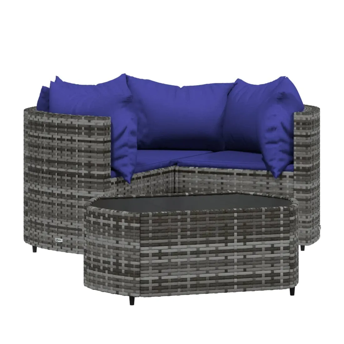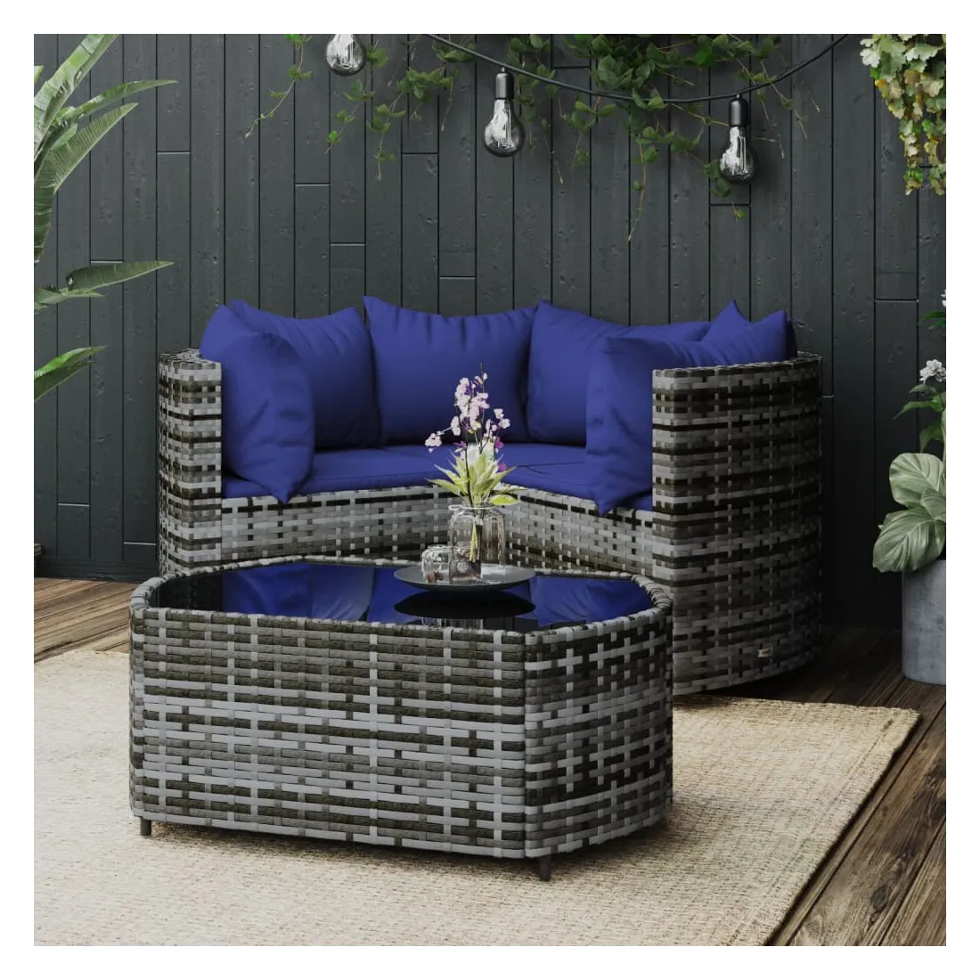 Cet ensemble de salon de jardin tendance, au design élégant et contemporain, est un excellent choix pour manger ou vous détendre dans votre jardin. Matériau résistant aux intempéries : la résine tressée, également connue sous le nom de rotin poly, résiste aux intempéries et est facile à nettoyer. Elle reste belle à l'extérieur pendant une longue période. Elle offre une excellente qualité, commodité et un aspect esthétique.Cadre robuste : les cadres en acier enduit de poudre rendent l'ensemble de salon d'extérieur robuste et stable pour une utilisation quotidienne à l'extérieur.Dessus de table pratique : le dessus lisse de la table de jardin est en verre trempé, facile à nettoyer avec un chiffon humide. De plus, le dessus robuste est parfait pour placer des repas, des boissons et d'autres objets décoratifs.Conception modulaire : l'ensemble de salon de jardin est flexible et facile à déplacer, vous pouvez donc le combiner avec d'autres segments modulaires dans la boutique en ligne pour créer vos propres configurations d'ensemble de salon de jardin !Expérience d'assise confortable : le dossier ajoute un confort d'assise supplémentaire au canapé de jardin. De plus, les coussins bien rembourrés offrent du confort pendant votre temps d'assise. Bon à savoir :Pour faciliter au maximum le montage, chaque produit est livré avec des instructions. Remarque :Le produit est conçu pour une utilisation à l'extérieur uniquement. Ne le rangez pas à l'intérieur.Pour que vos meubles d'extérieur restent beaux, nous vous recommandons de les protéger avec une housse imperméable.