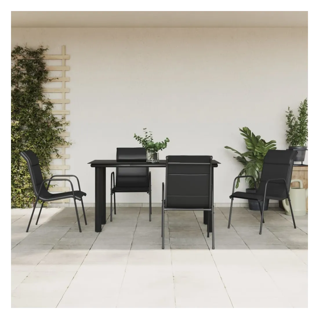 Ensemble à manger de jardin 5 pcs noir textilène et acier