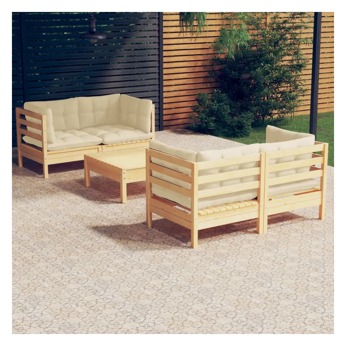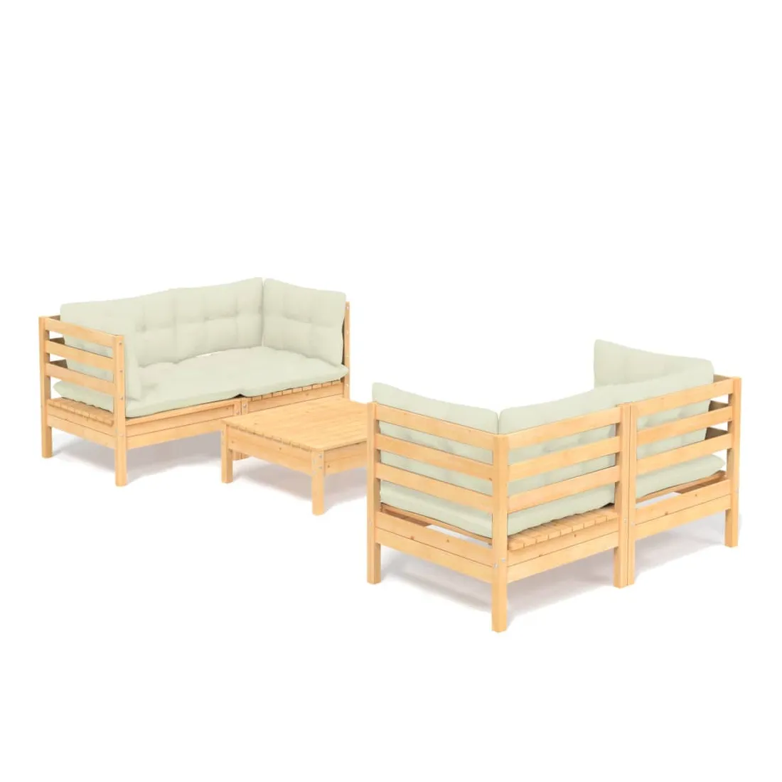 Ce salon de jardin est un excellent choix pour vous détendre et profiter du beau temps, faire une sieste ou discuter avec votre famille ou vos amis. Le salon de patio est fabriqué en bois de pin massif, ce qui le rend robuste et stable. Les coussins ajoutent un confort supplémentaire. Vous pouvez le combiner avec d’autres segments modulaires pour créer vos propres configurations de salon de jardin ! Remarque : afin de prolonger la durée de vie des meubles d'extérieur, nous vous recommandons de les protéger avec une housse imperméable.