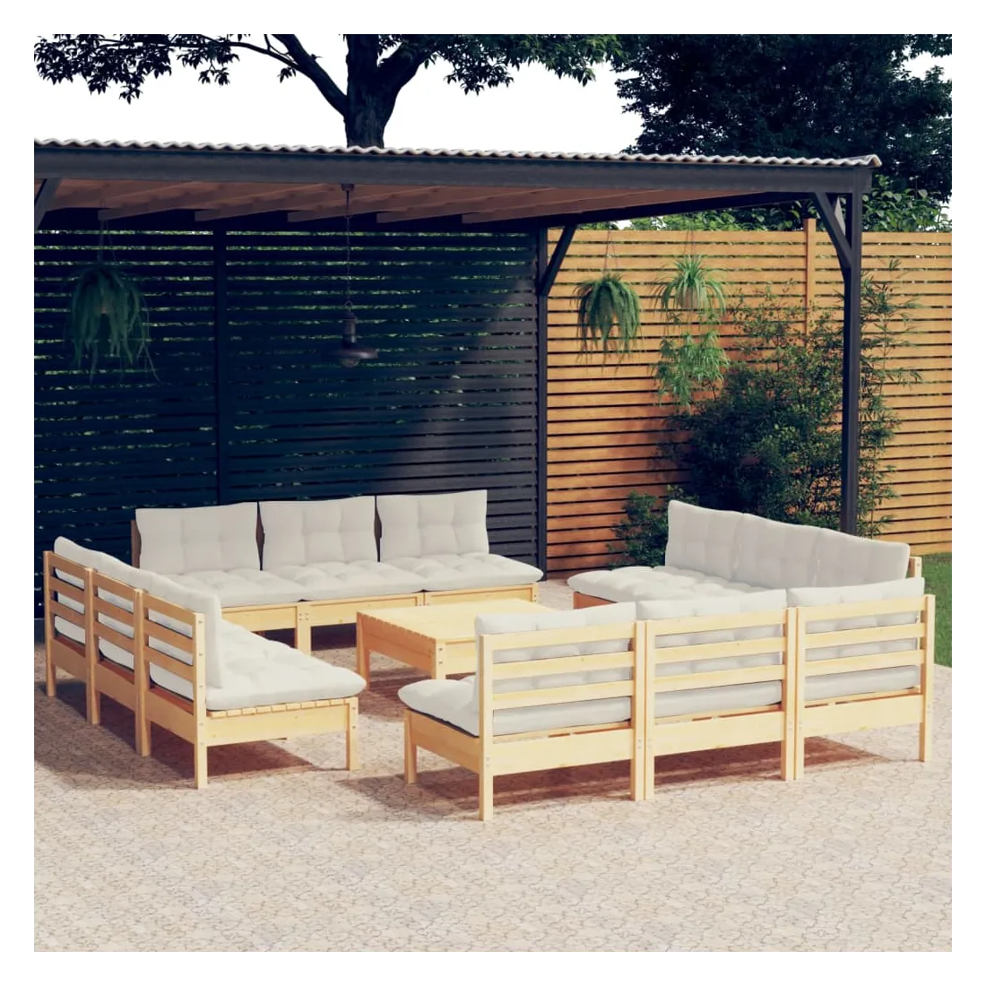 Ce salon de jardin est un excellent choix pour vous détendre et profiter du beau temps, faire une sieste ou discuter avec votre famille ou vos amis. Le salon de patio est fabriqué en bois de pin massif, ce qui le rend robuste et stable. Les coussins ajoutent un confort supplémentaire. Vous pouvez le combiner avec d’autres segments modulaires pour créer vos propres configurations de salon de jardin ! Remarque : afin de prolonger la durée de vie des meubles d'extérieur, nous vous recommandons de les protéger avec une housse imperméable.