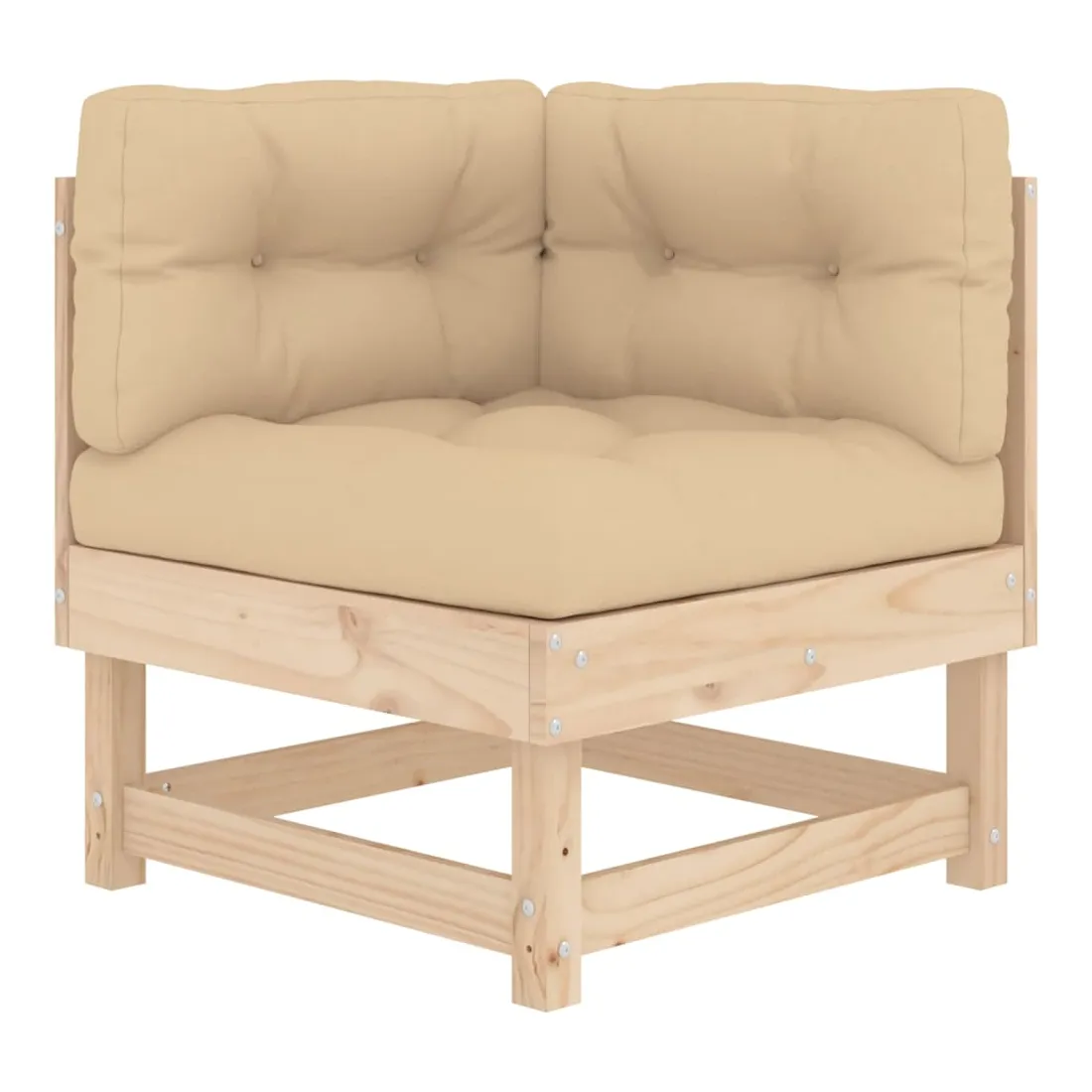 Ce salon de jardin en bois, qui se démarque par son design à lattes et ses coussins moelleux, sera un excellent supplément à votre jardin, patio ou terrasse pour profiter d'un moment agréable avec votre famille ou vos amis. Bois de pin massif : le bois de pin massif est un matériau naturel magnifique. Le bois de pin a un grain droit et les nœuds donnent au matériau son aspect caractéristique et rustique.Cadre robuste et stable : le cadre en bois rend l'ensemble de salon robuste et stable pour une utilisation quotidienne à l'extérieur.Expérience d'assise confortable : le dossier et l'accoudoir ajoutent un confort d'assise supplémentaire à l'ensemble de meubles de jardin. De plus, les coussins bien rembourrés vous permettent de vous asseoir confortablement.Design modulaire : le canapé est flexible et facile à déplacer. Vous pouvez le combiner avec d'autres segments modulaires de la boutique en ligne pour créer vos propres configurations de salon de jardin ! Bon à savoir :Pour que vos meubles d'extérieur restent beaux, nous vous recommandons de les protéger avec une housse imperméable.