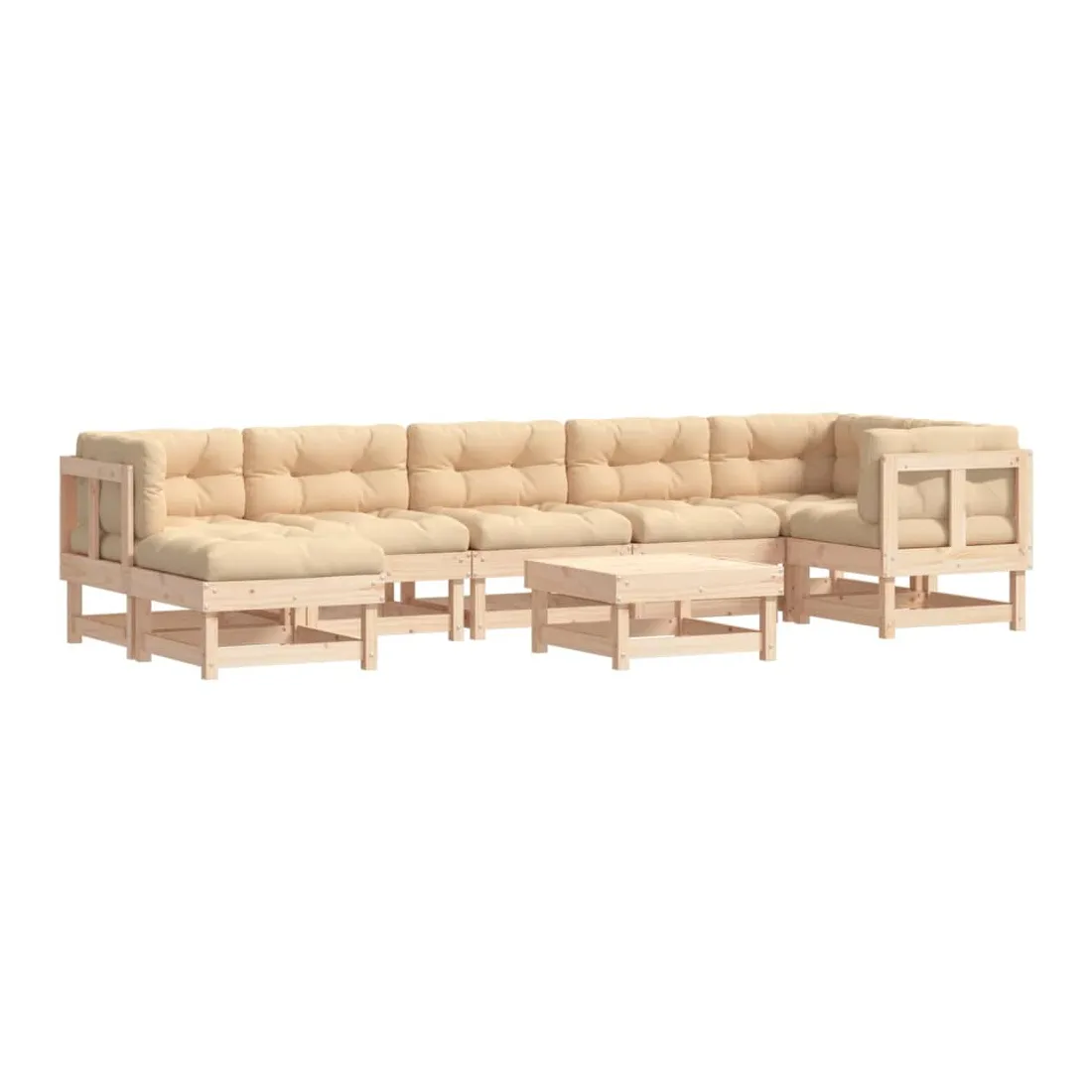 Ce salon de jardin en bois, qui se démarque par son design à lattes et ses coussins moelleux, sera un excellent supplément à votre jardin, patio ou terrasse pour profiter d'un moment agréable avec votre famille ou vos amis. Bois de pin massif : le bois de pin massif est un matériau naturel magnifique. Le bois de pin a un grain droit et les nœuds donnent au matériau son aspect caractéristique et rustique.Cadre robuste et stable : le cadre en bois rend l'ensemble de salon robuste et stable pour une utilisation quotidienne à l'extérieur.Expérience d'assise confortable : le dossier et l'accoudoir ajoutent un confort d'assise supplémentaire à l'ensemble de meubles de jardin. De plus, les coussins bien rembourrés vous permettent de vous asseoir confortablement.Design modulaire : le canapé est flexible et facile à déplacer. Vous pouvez le combiner avec d'autres segments modulaires de la boutique en ligne pour créer vos propres configurations de salon de jardin ! Bon à savoir :Pour que vos meubles d'extérieur restent beaux, nous vous recommandons de les protéger avec une housse imperméable.