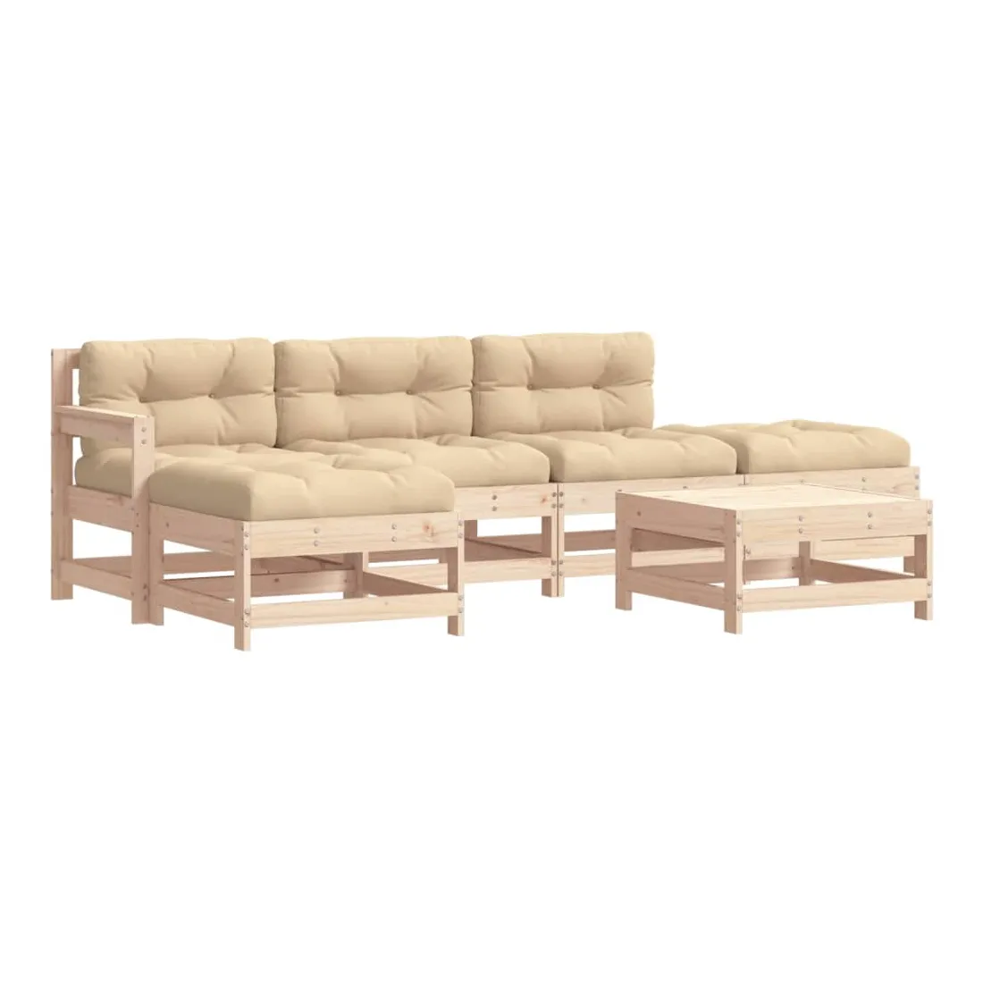 Ce salon de jardin en bois, qui se démarque par son design à lattes et ses coussins moelleux, sera un excellent supplément à votre jardin, patio ou terrasse pour profiter d'un moment agréable avec votre famille ou vos amis. Bois de pin massif : le bois de pin massif est un matériau naturel magnifique. Le bois de pin a un grain droit et les nœuds donnent au matériau son aspect caractéristique et rustique.Cadre robuste et stable : le cadre en bois rend l'ensemble de salon robuste et stable pour une utilisation quotidienne à l'extérieur.Expérience d'assise confortable : le dossier et l'accoudoir ajoutent un confort d'assise supplémentaire à l'ensemble de meubles de jardin. De plus, les coussins bien rembourrés vous permettent de vous asseoir confortablement.Design modulaire : le canapé est flexible et facile à déplacer. Vous pouvez le combiner avec d'autres segments modulaires de la boutique en ligne pour créer vos propres configurations de salon de jardin ! Bon à savoir :Pour que vos meubles d'extérieur restent beaux, nous vous recommandons de les protéger avec une housse imperméable.