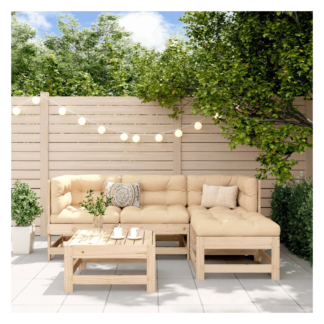 Ce salon de jardin en bois, qui se démarque par son design à lattes, sera un excellent supplément à votre jardin, patio ou terrasse pour profiter d'un moment agréable avec votre famille ou vos amis. Bois de pin massif : le bois de pin massif est un matériau naturel magnifique. Le bois de pin a un grain droit et les nœuds donnent au matériau son aspect caractéristique et rustique.Cadre robuste et stable : les cadres en bois rendent l'ensemble de salon robuste et stable pour une utilisation quotidienne à l'extérieur.Design modulaire : le canapé est flexible et facile à déplacer. Vous pouvez le combiner avec d'autres segments modulaires de la boutique en ligne pour créer vos propres configurations de salon de jardin ! Bon à savoir :Pour que vos meubles d'extérieur restent beaux, nous vous recommandons de les protéger avec une housse imperméable.Les coussins ne sont pas inclus dans la livraison.