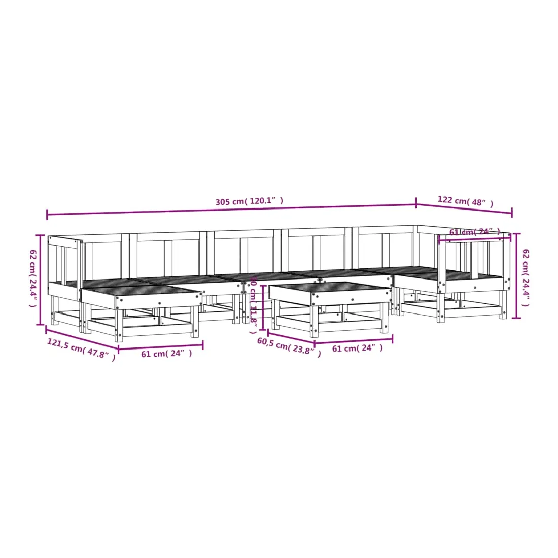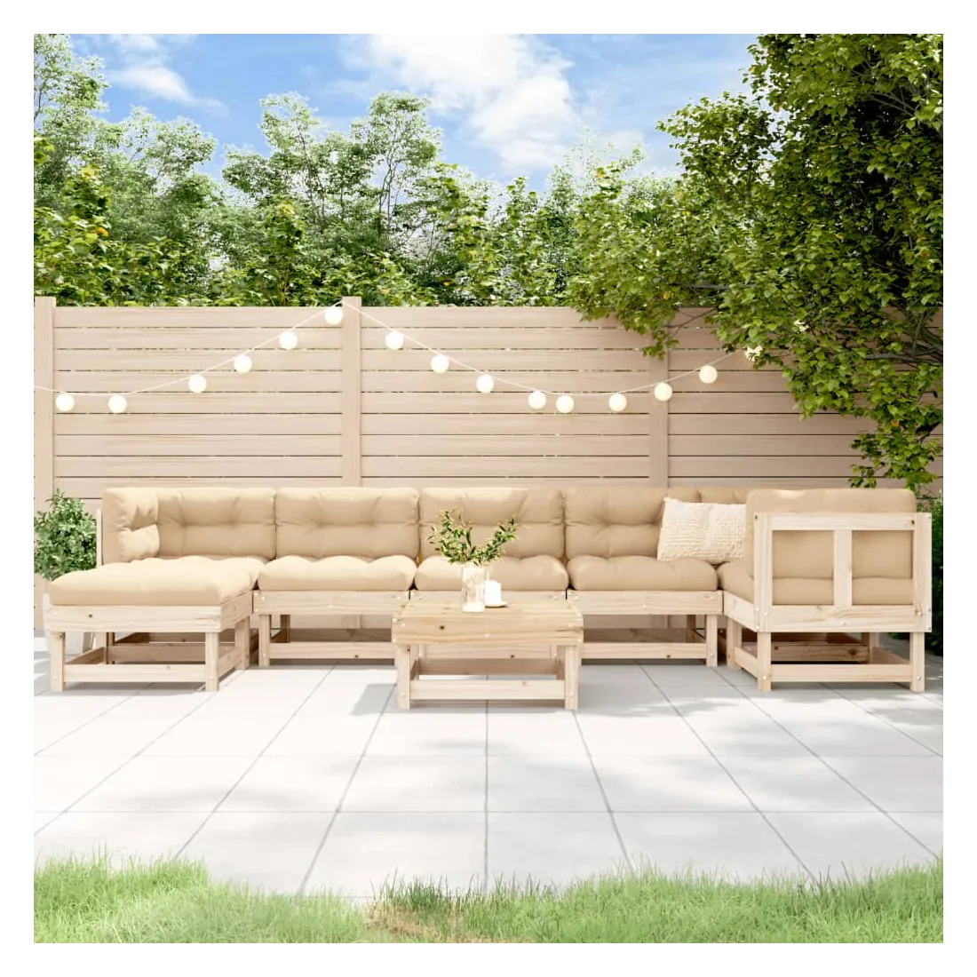 vidaXLCe salon de jardin en bois, qui se démarque par son design à lattes, sera un excellent supplément à votre jardin, patio ou terrasse pour profiter d'un moment agréable avec votre famille ou vos amis. Bois de pin massif : le bois de pin massif est un matériau naturel magnifique. Le bois de pin a un grain droit et les nœuds donnent au matériau son aspect caractéristique et rustique.Cadre robuste et stable : les cadres en bois rendent l'ensemble de salon robuste et stable pour une utilisation quotidienne à l'extérieur.Design modulaire : le canapé est flexible et facile à déplacer. Vous pouvez le combiner avec d'autres segments modulaires de la boutique en ligne pour créer vos propres configurations de salon de jardin ! Bon à savoir :Pour que vos meubles d'extérieur restent beaux, nous vous recommandons de les protéger avec une housse imperméable.Les coussins ne sont pas inclus dans la livraison.