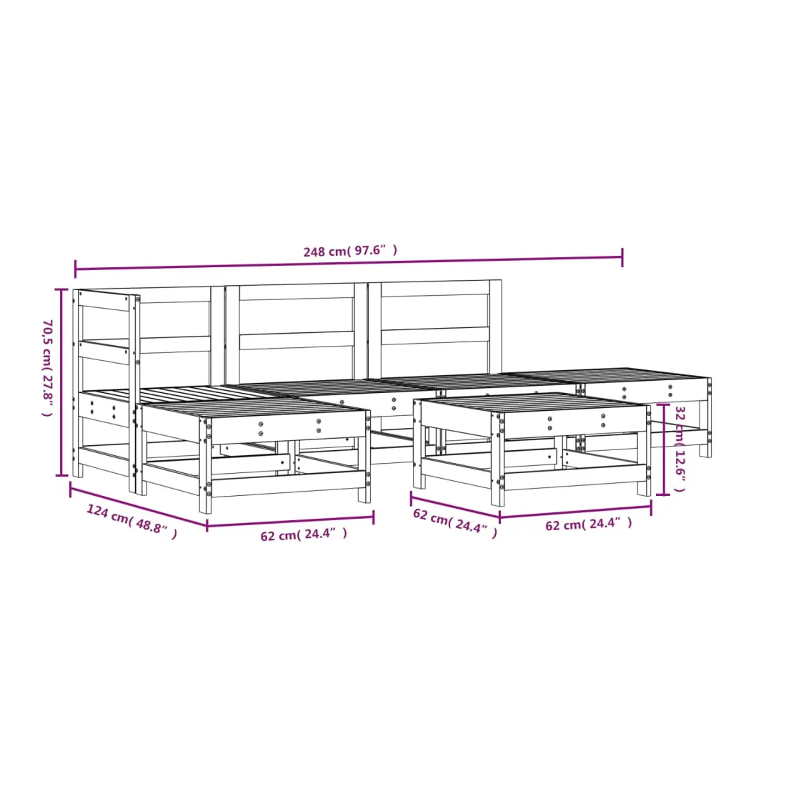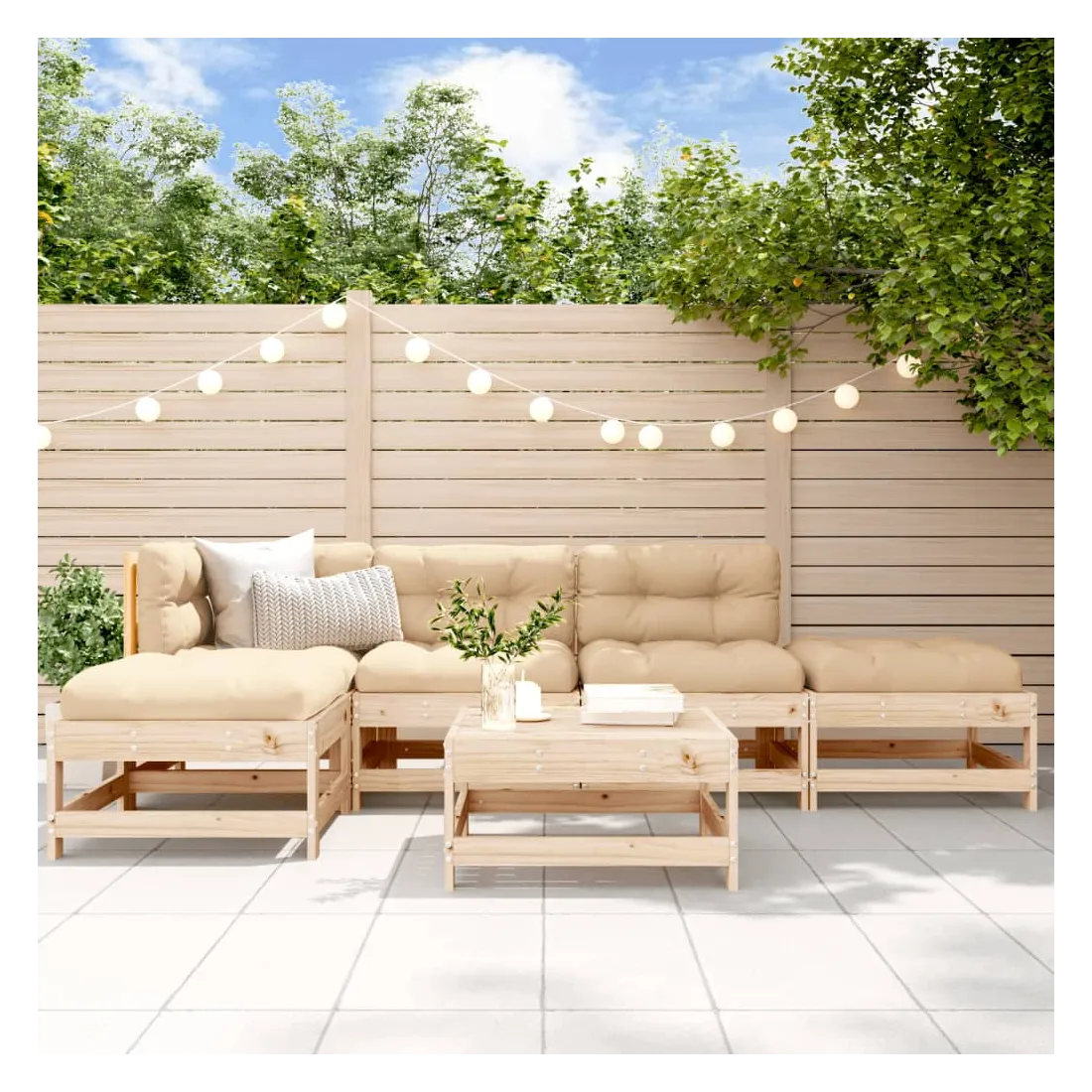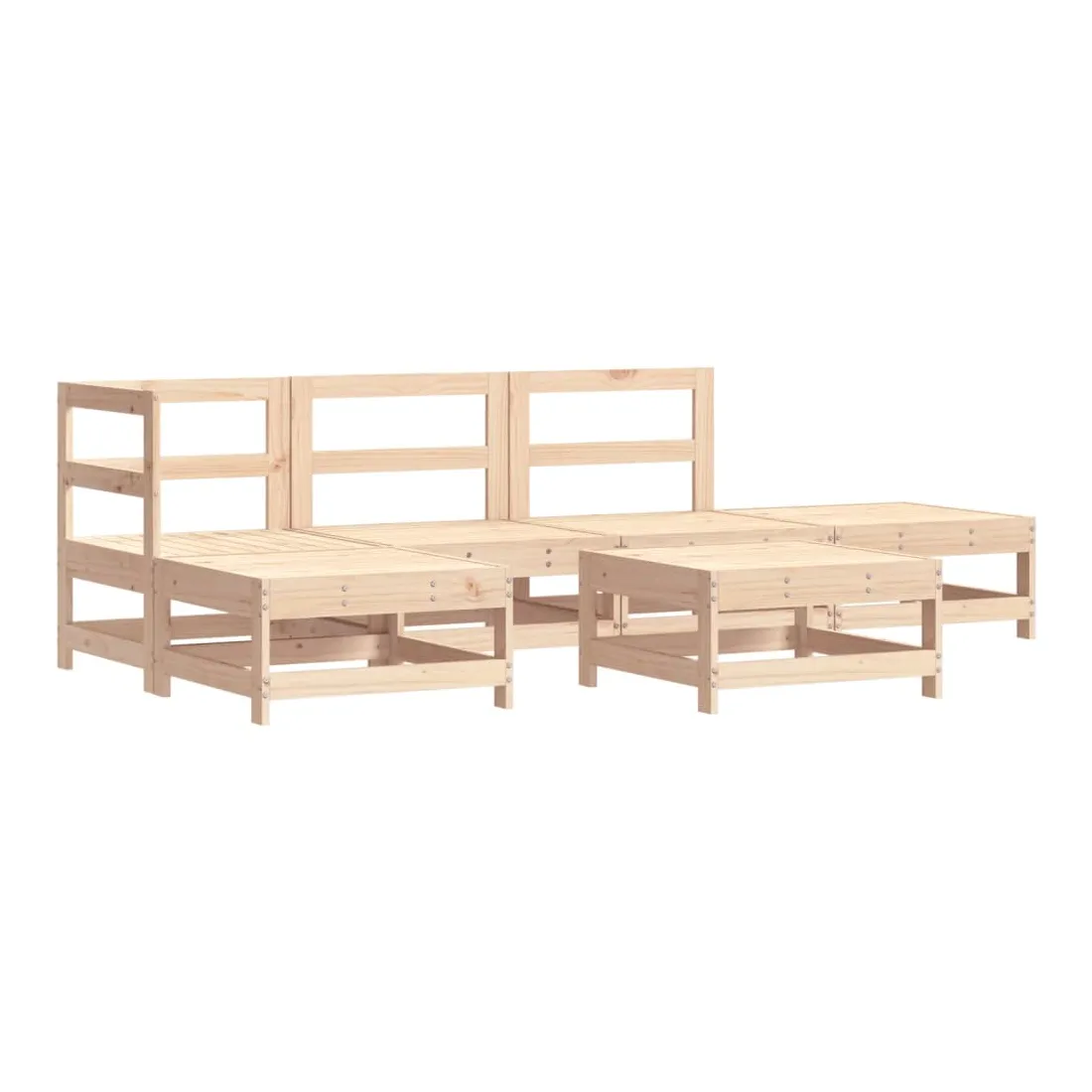 Ce salon de jardin en bois, qui se démarque par son design à lattes, sera un excellent supplément à votre jardin, patio ou terrasse pour profiter d'un moment agréable avec votre famille ou vos amis. Bois de pin massif : le bois de pin massif est un matériau naturel magnifique. Le bois de pin a un grain droit et les nœuds donnent au matériau son aspect caractéristique et rustique.Cadre robuste et stable : les cadres en bois rendent l'ensemble de salon robuste et stable pour une utilisation quotidienne à l'extérieur.Design modulaire : le canapé est flexible et facile à déplacer. Vous pouvez le combiner avec d'autres segments modulaires de la boutique en ligne pour créer vos propres configurations de salon de jardin ! Bon à savoir :Pour que vos meubles d'extérieur restent beaux, nous vous recommandons de les protéger avec une housse imperméable.Les coussins ne sont pas inclus dans la livraison.