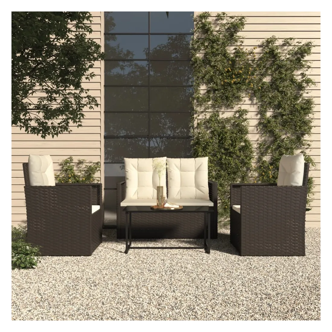 vidaXLCet ensemble de salon d'extérieur tendance, au design élégant et contemporain, est un excellent choix pour manger ou vous détendre dans votre jardin. Matériau durable : le polyéthylène (PE) est la matière plastique la plus utilisée. Son utilisation dans les meubles est pratique car il est résistant aux UV, léger et facile à entretenir.Table exquise : la table élégante est un excellent endroit pour placer des boissons, de la nourriture et des décorations. Elle est d'une belle apparence et facile à nettoyer. Elle est un supplément parfait à votre jardin et à votre terrasse, créant une impression durable !Expérience de siège confortable : des coussins supplémentaires sont inclus pour votre confort. Remarque :Afin de prolonger la durée de vie de votre mobilier d'extérieur, nous vous recommandons de le protéger avec une housse imperméable.Chaque produit est livré avec un manuel de montage dans la boîte pour un montage facile.