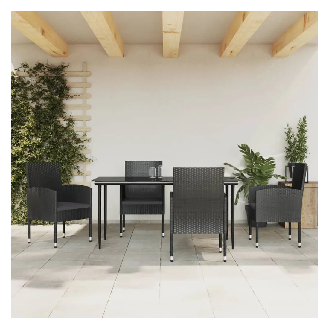 Profitez d'un bon repas ou d'un thé l'après-midi dans votre espace extérieur avec cet ensemble de salle à manger de jardin ! Ayant un design élégant, il deviendra le point central de votre jardin et de votre terrasse ! Matériau haut de gamme : la résine tressée est un matériau de résistance exceptionnelle et durable dans différentes conditions météorologiques.Cadre robuste : cette table et cette chaise de jardin sont construites avec un cadre en acier, ce qui assure robustesse et stabilité.Dessus de table pratique : le dessus lisse de la table à manger est en verre trempé, facile à nettoyer avec un chiffon humide. De plus, le dessus robuste est parfait pour placer des repas, des boissons et d'autres objets décoratifs.Expérience de siège confortable : les coussins de siège épais et amovibles sont inclus pour votre confort. Bon à savoir :Pour que vos meubles d'extérieur restent beaux, nous vous recommandons de les protéger avec une housse imperméable.