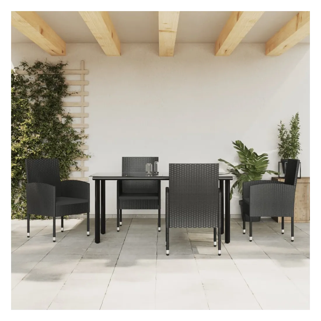 Profitez d'un bon repas ou d'un thé l'après-midi dans votre espace extérieur avec cet ensemble de salle à manger de jardin ! Ayant un design élégant, il deviendra le point central de votre jardin et de votre terrasse ! Matériau haut de gamme : la résine tressée est un matériau de résistance exceptionnelle et durable dans différentes conditions météorologiques.Cadre robuste : cette table et cette chaise de jardin sont construites avec un cadre en acier, ce qui assure robustesse et stabilité.Dessus de table pratique : le dessus lisse de la table à manger est en verre trempé, facile à nettoyer avec un chiffon humide. De plus, le dessus robuste est parfait pour placer des repas, des boissons et d'autres objets décoratifs.Expérience de siège confortable : les coussins de siège épais et amovibles sont inclus pour votre confort. Bon à savoir :Pour que vos meubles d'extérieur restent beaux, nous vous recommandons de les protéger avec une housse imperméable.