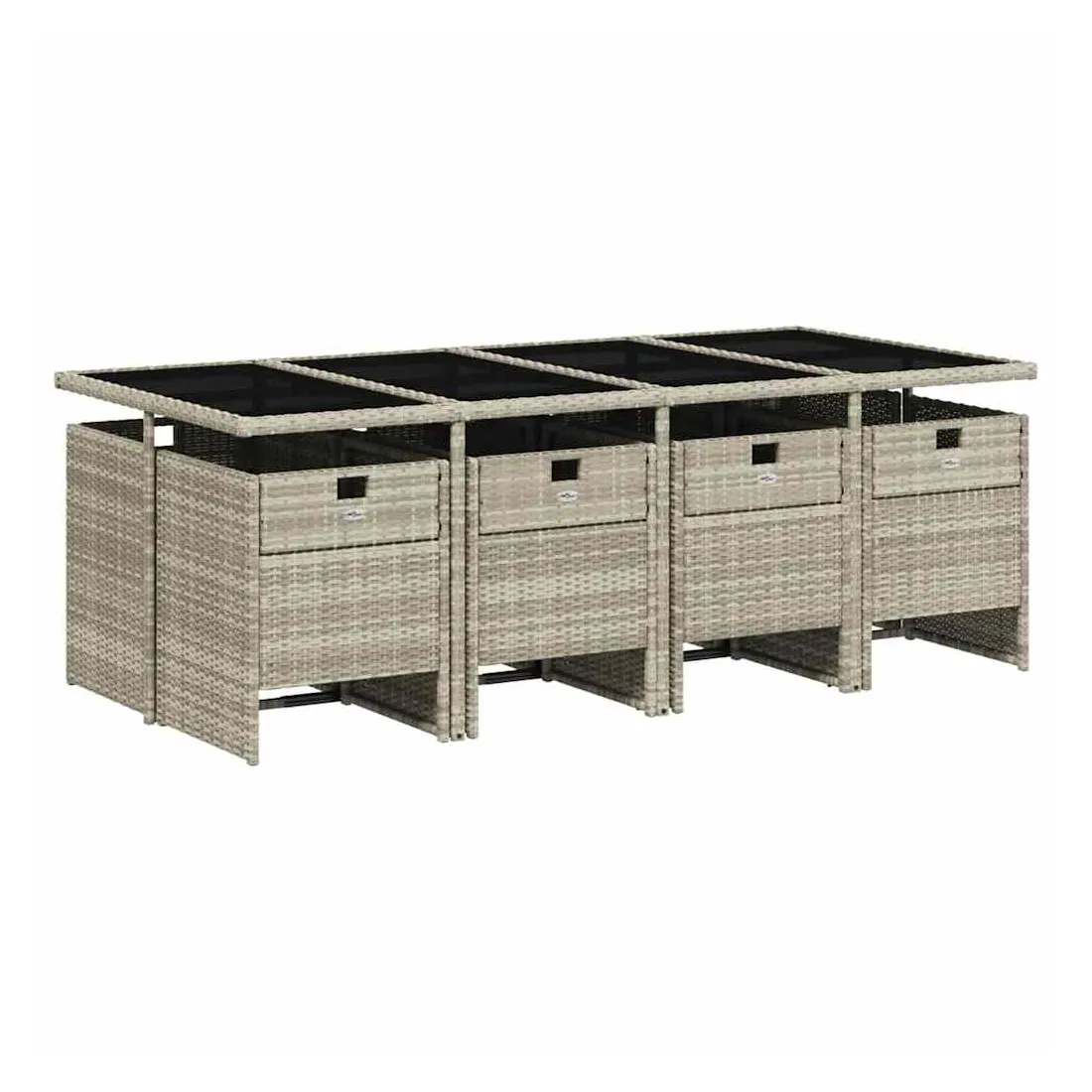 Cet ensemble de salle à manger de jardin est un excellent choix pour les repas en plein air ou pour vous détendre dans le jardin, dans l'arrière-cour ou sur la terrasse. Matériau durable : la résine tressée, également connue sous le nom de poly rotin, est un matériau synthétique solide et nécessitant peu d'entretien qui ressemble au rotin naturel. Il est léger, facile à nettoyer et couramment utilisé pour les meubles d'extérieur en raison de sa durabilité et de ses propriétés de résistance aux intempéries.Rangement compact : ces chaises sont dotées d'un dossier rabattable, ce qui permet de les ranger facilement sous la table. Une fois pliées, elles se rangent parfaitement sous la table, formant un cube peu encombrant. Expérience d'assise confortable : ce mobilier d'extérieur, doté de coussins épais, offre une expérience d'assise confortable.Housse amovible et lavable : ces coussins de siège sont dotés de housses amovibles pour un lavage et un entretien faciles.Dessus en verre : le dessus de la table d'extérieur est fabriqué en verre trempé solide et durable, ce qui le rend facile à nettoyer avec un chiffon humide et ajoute une touche d'élégance à votre espace extérieur. Bon à savoir : Pour que vos meubles d'extérieur restent beaux, nous vous recommandons de les protéger avec une housse imperméable.