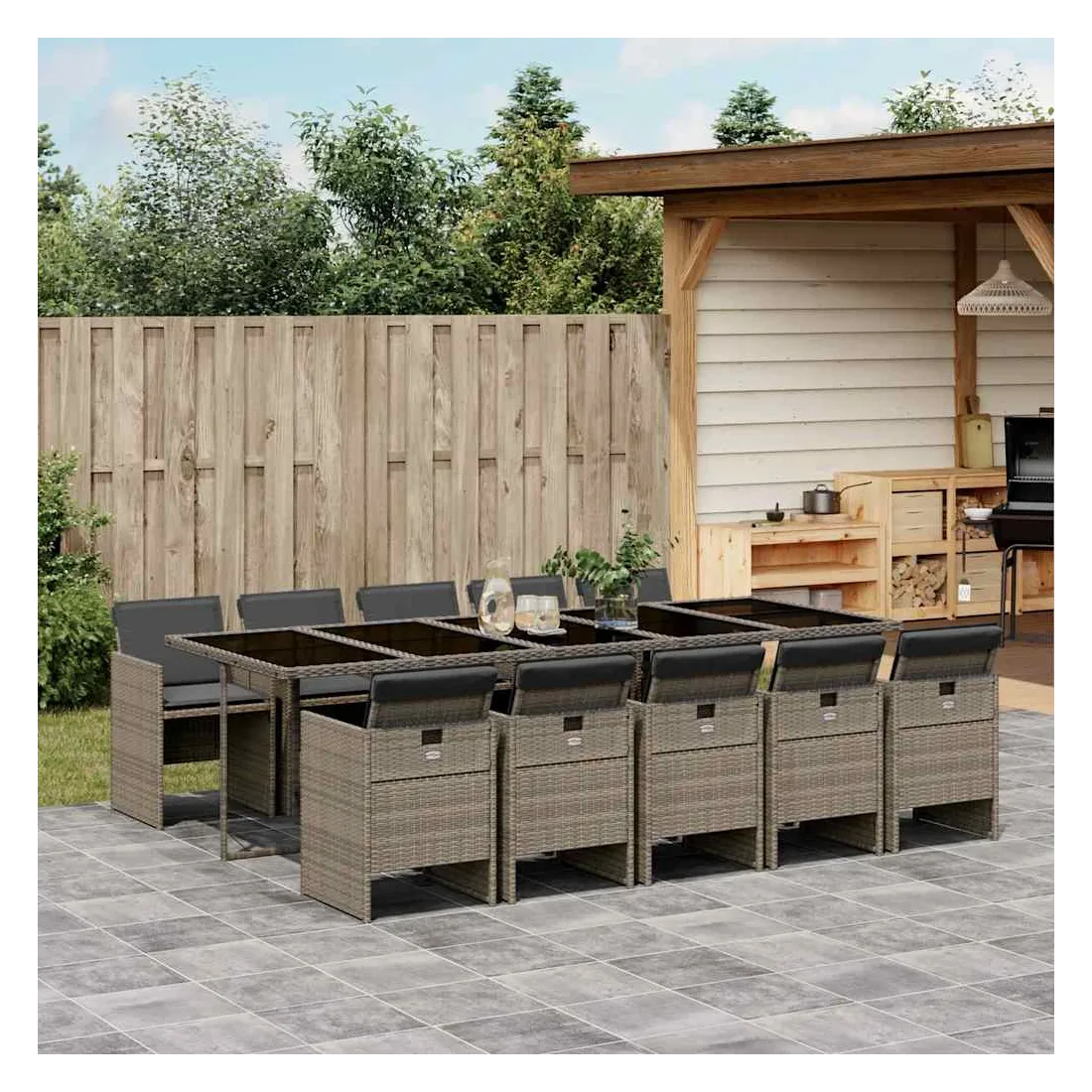 Cet ensemble de salle à manger de jardin est un excellent choix pour les repas en plein air ou pour vous détendre dans le jardin, dans l'arrière-cour ou sur la terrasse. Matériau durable : la résine tressée, également connue sous le nom de poly rotin, est un matériau synthétique solide et nécessitant peu d'entretien qui ressemble au rotin naturel. Il est léger, facile à nettoyer et couramment utilisé pour les meubles d'extérieur en raison de sa durabilité et de ses propriétés de résistance aux intempéries.Rangement compact : ces chaises sont dotées d'un dossier rabattable, ce qui permet de les ranger facilement sous la table. Une fois pliées, elles se rangent parfaitement sous la table, formant un cube peu encombrant. Expérience d'assise confortable : ce mobilier d'extérieur, doté de coussins épais, offre une expérience d'assise confortable.Housse amovible et lavable : ces coussins de siège sont dotés de housses amovibles pour un lavage et un entretien faciles.Dessus en verre : le dessus de la table d'extérieur est fabriqué en verre trempé solide et durable, ce qui le rend facile à nettoyer avec un chiffon humide et ajoute une touche d'élégance à votre espace extérieur. Bon à savoir : Pour que vos meubles d'extérieur restent beaux, nous vous recommandons de les protéger avec une housse imperméable.