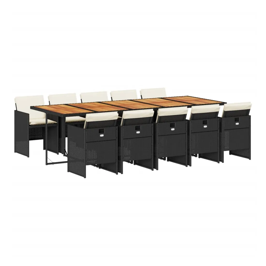 Cet ensemble de salle à manger de jardin est un excellent choix pour les repas en plein air ou pour vous détendre dans le jardin, dans l'arrière-cour ou sur la terrasse. Matériau durable : la résine tressée, également connue sous le nom de poly rotin, est un matériau synthétique solide et nécessitant peu d'entretien qui ressemble au rotin naturel. Il est léger, facile à nettoyer et couramment utilisé pour les meubles d'extérieur en raison de sa durabilité et de ses propriétés de résistance aux intempéries.Rangement compact : ces chaises sont dotées d'un dossier rabattable, ce qui permet de les ranger facilement sous la table. Une fois pliées, elles se rangent parfaitement sous la table, formant un cube peu encombrant. Expérience d'assise confortable : ce mobilier d'extérieur, doté de coussins épais, offre une expérience d'assise confortable.Housse amovible et lavable : ces coussins de siège sont dotés de housses amovibles pour un lavage et un entretien faciles.Dessus stable et facile à nettoyer : cette table de jardin a un dessus en bois d'acacia robuste, durable et facile à nettoyer avec un chiffon humide. Bon à savoir : Pour que vos meubles d'extérieur restent beaux, nous vous recommandons de les protéger avec une housse imperméable.