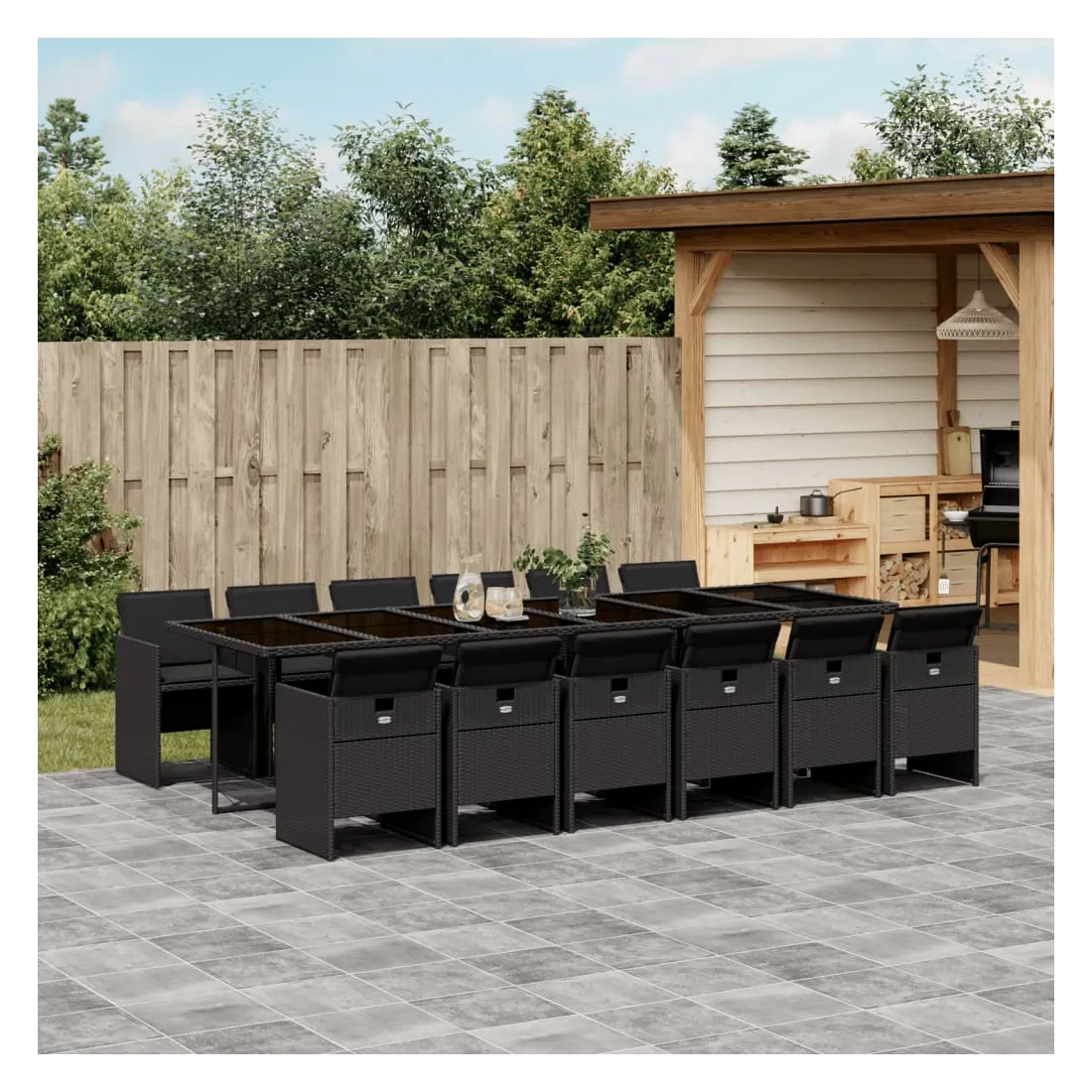 Cet ensemble de salle à manger de jardin est un excellent choix pour les repas en plein air ou pour vous détendre dans le jardin, dans l'arrière-cour ou sur la terrasse. Matériau durable : la résine tressée, également connue sous le nom de poly rotin, est un matériau synthétique solide et nécessitant peu d'entretien qui ressemble au rotin naturel. Il est léger, facile à nettoyer et couramment utilisé pour les meubles d'extérieur en raison de sa durabilité et de ses propriétés de résistance aux intempéries.Rangement compact : ces chaises sont dotées d'un dossier rabattable, ce qui permet de les ranger facilement sous la table. Une fois pliées, elles se rangent parfaitement sous la table, formant un cube peu encombrant. Expérience d'assise confortable : ce mobilier d'extérieur, doté de coussins épais, offre une expérience d'assise confortable.Housse amovible et lavable : ces coussins de siège sont dotés de housses amovibles pour un lavage et un entretien faciles.Dessus en verre : le dessus de la table d'extérieur est fabriqué en verre trempé solide et durable, ce qui le rend facile à nettoyer avec un chiffon humide et ajoute une touche d'élégance à votre espace extérieur. Bon à savoir : Pour que vos meubles d'extérieur restent beaux, nous vous recommandons de les protéger avec une housse imperméable.