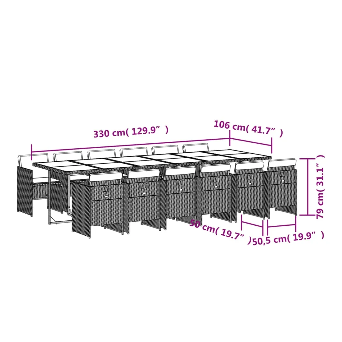 - Dimensions : 330 x 106 x 73 cm (L x l x H)