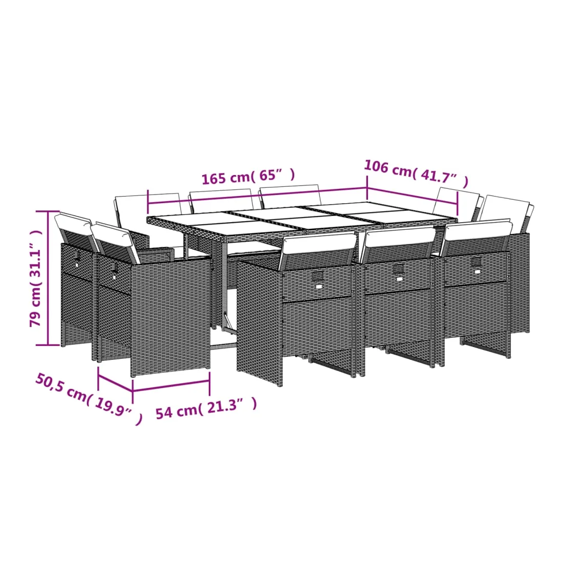 Cet ensemble de salle à manger de jardin est un excellent choix pour les repas en plein air ou pour vous détendre dans le jardin, dans l'arrière-cour ou sur la terrasse. Matériau durable : la résine tressée, également connue sous le nom de poly rotin, est un matériau synthétique solide et nécessitant peu d'entretien qui ressemble au rotin naturel. Il est léger, facile à nettoyer et couramment utilisé pour les meubles d'extérieur en raison de sa durabilité et de ses propriétés de résistance aux intempéries.Rangement compact : ces chaises sont dotées d'un dossier rabattable, ce qui permet de les ranger facilement sous la table. Une fois pliées, elles se rangent parfaitement sous la table, formant un cube peu encombrant. Expérience d'assise confortable : ce mobilier d'extérieur, doté de coussins épais, offre une expérience d'assise confortable.Housse amovible et lavable : ces coussins de siège sont dotés de housses amovibles pour un lavage et un entretien faciles.Dessus stable et facile à nettoyer : cette table de jardin a un dessus en bois d'acacia robuste, durable et facile à nettoyer avec un chiffon humide. Bon à savoir : Pour que vos meubles d'extérieur restent beaux, nous vous recommandons de les protéger avec une housse imperméable.