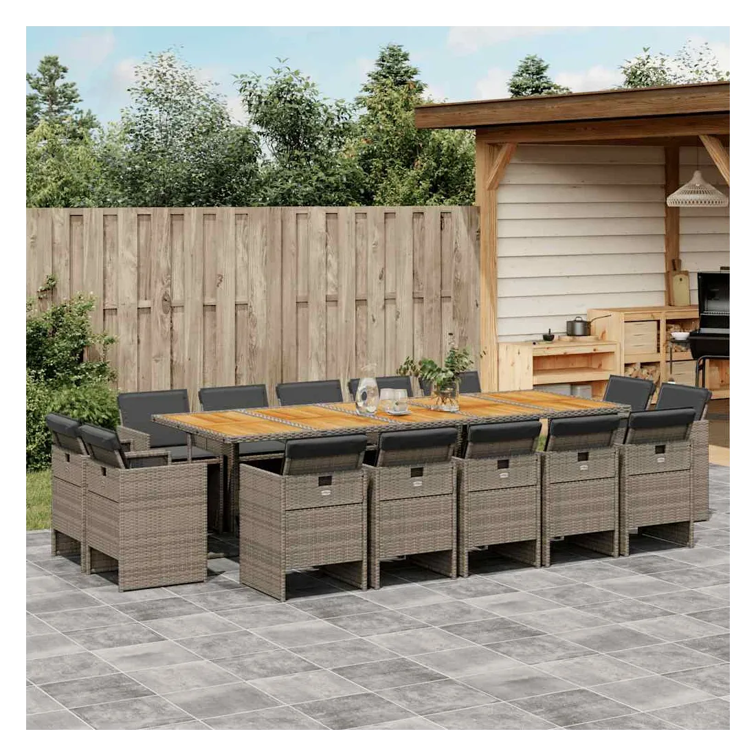 - Matériau : résine tressée, acier enduit de poudre, bois d'acacia massif avec finition à l'huile