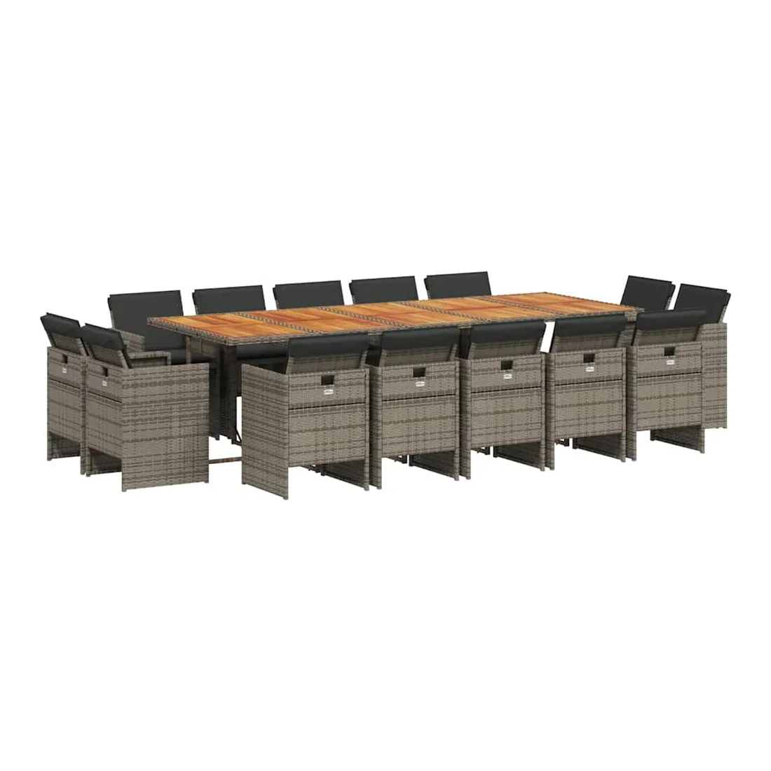 Cet ensemble de salle à manger de jardin est un excellent choix pour les repas en plein air ou pour vous détendre dans le jardin, dans l'arrière-cour ou sur la terrasse. Matériau durable : la résine tressée, également connue sous le nom de poly rotin, est un matériau synthétique solide et nécessitant peu d'entretien qui ressemble au rotin naturel. Il est léger, facile à nettoyer et couramment utilisé pour les meubles d'extérieur en raison de sa durabilité et de ses propriétés de résistance aux intempéries.Rangement compact : ces chaises sont dotées d'un dossier rabattable, ce qui permet de les ranger facilement sous la table. Une fois pliées, elles se rangent parfaitement sous la table, formant un cube peu encombrant. Expérience d'assise confortable : ce mobilier d'extérieur, doté de coussins épais, offre une expérience d'assise confortable.Housse amovible et lavable : ces coussins de siège sont dotés de housses amovibles pour un lavage et un entretien faciles.Dessus stable et facile à nettoyer : cette table de jardin a un dessus en bois d'acacia robuste, durable et facile à nettoyer avec un chiffon humide. Bon à savoir : Pour que vos meubles d'extérieur restent beaux, nous vous recommandons de les protéger avec une housse imperméable.